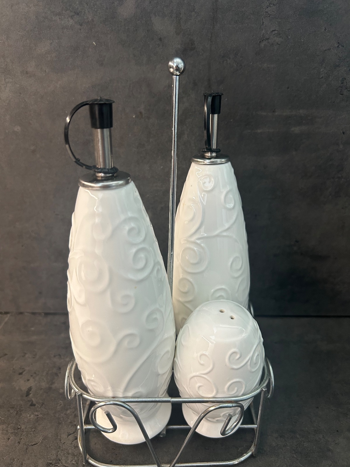 Dochucovacia súprava na olej, ocot, soľ, korenie.