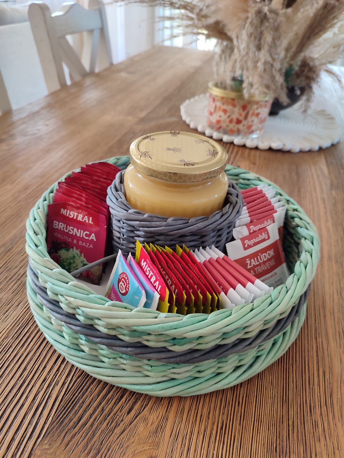 Košíček na čajové vrecúška a med