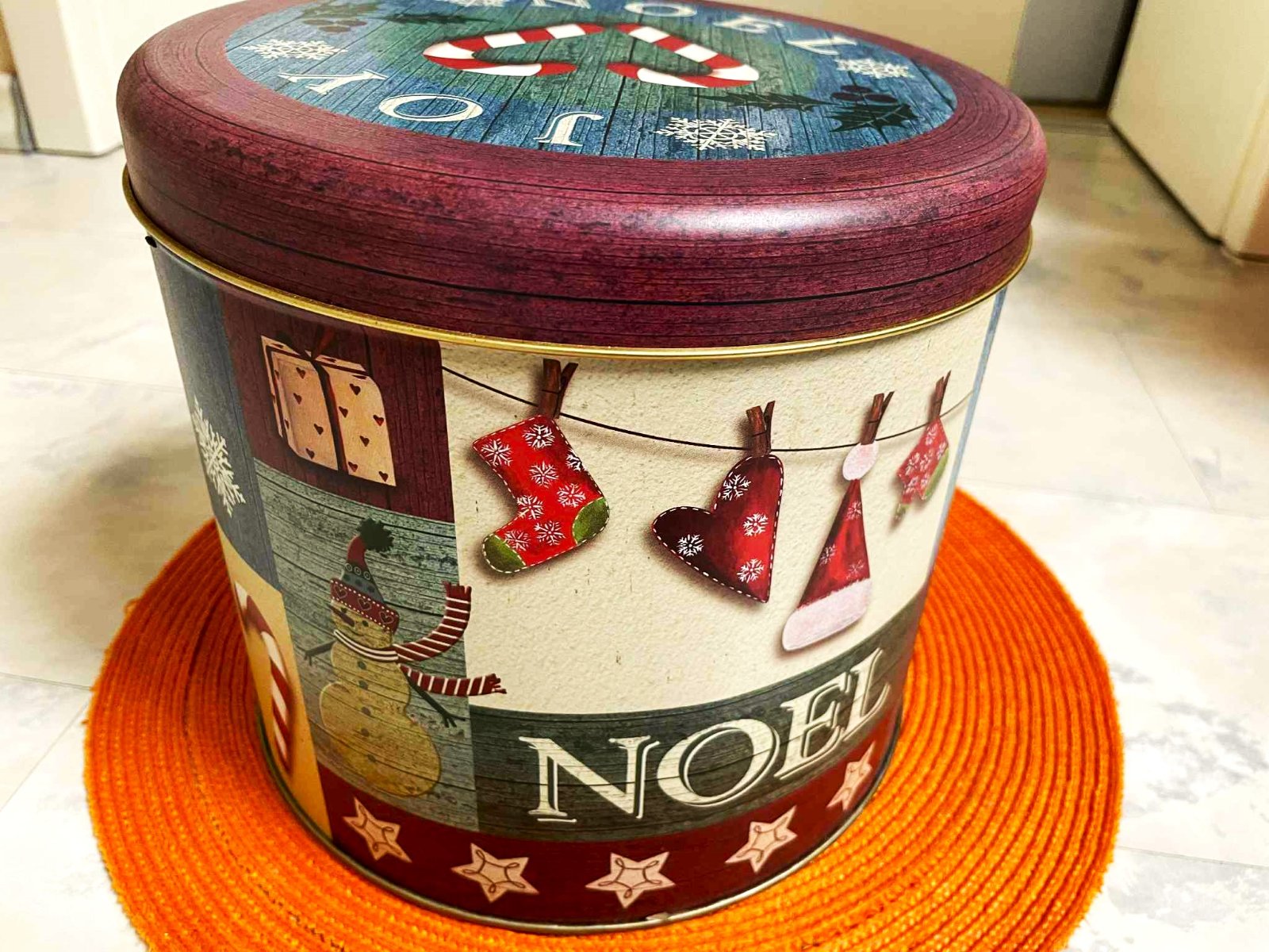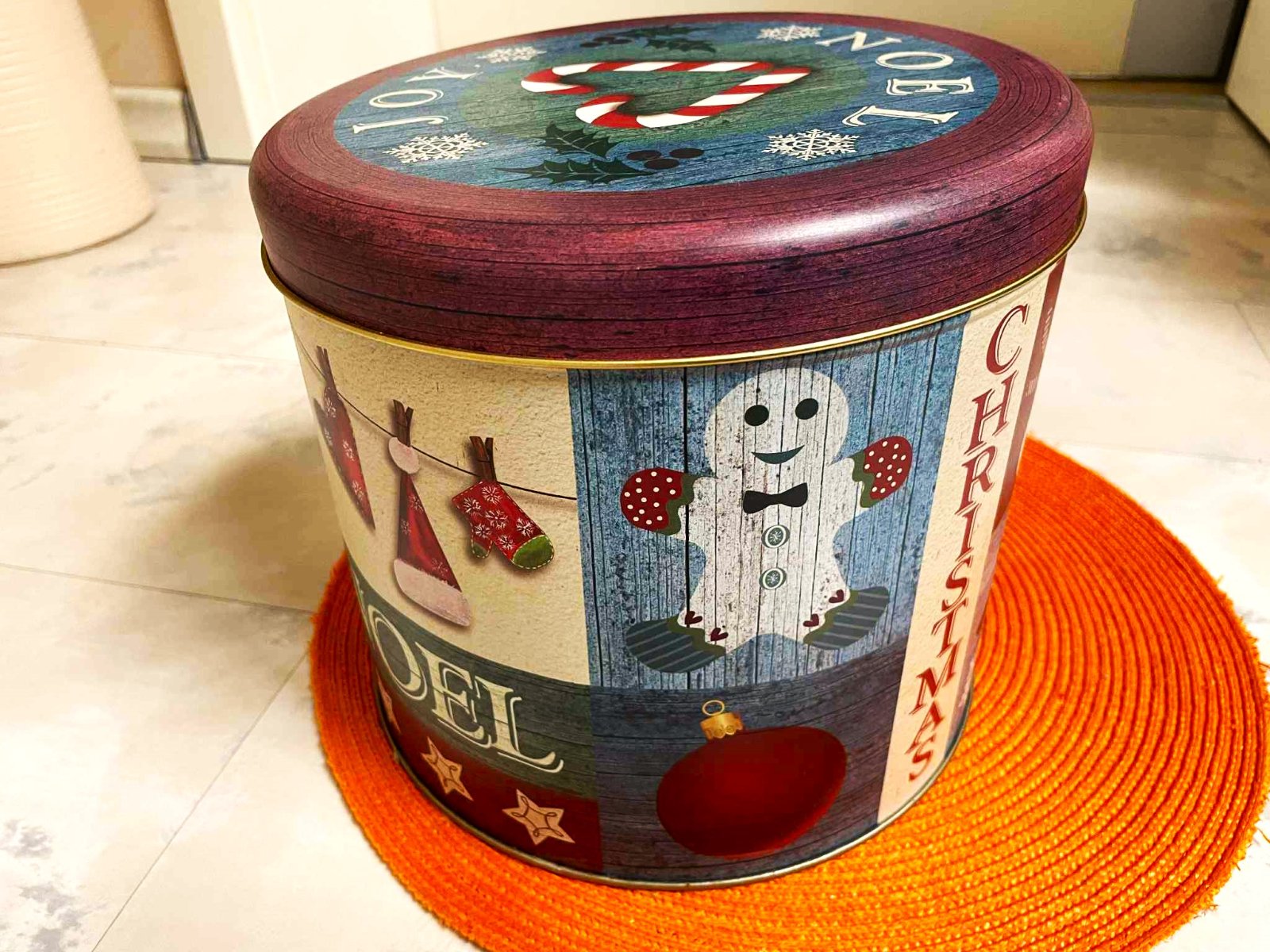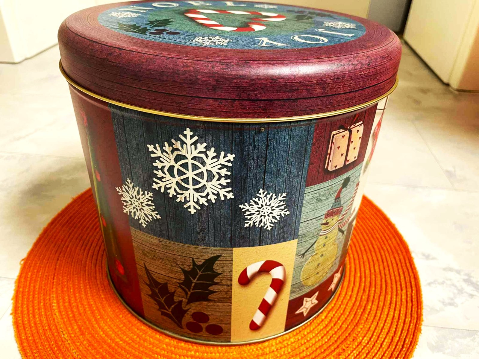kvalitná takmer nepoužitá veľká plechová dóza,super na perníky na Vianoce,alebo na drobné pečivo,ale aj na iné využitie v domácnosti,výška = 20 cm, priemer = 22 cm