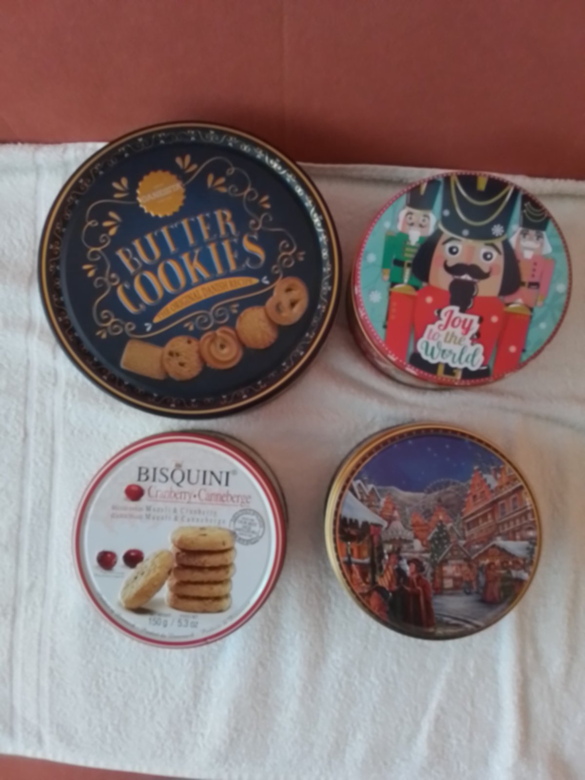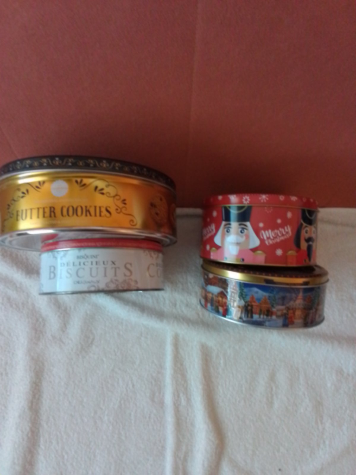 Plechové dózy 4ks, najväčší ma priemer 20cm, ostatné 14cm. Sú ako nové. Cena spolu 4,00eur +poštovné.