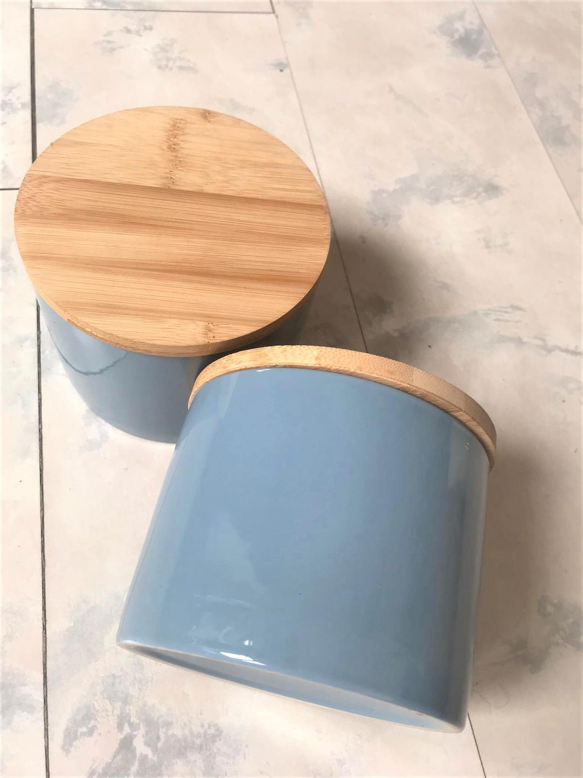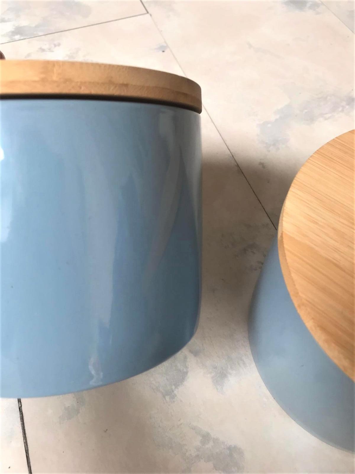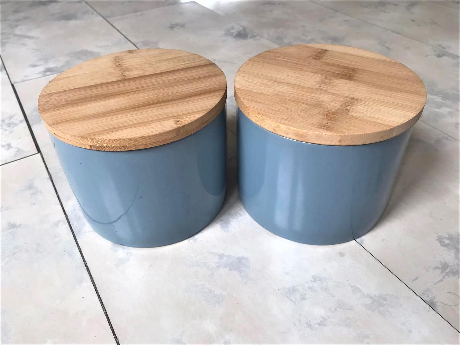 perfektné porcelánové dózy s výborným uzatváraním,veko je naturálne drevené,vhodné aj ako bytová dekorácia, min. užívané, top stav,výška= 12 cm, priemer = 14 cm