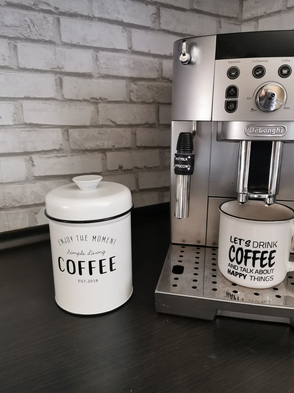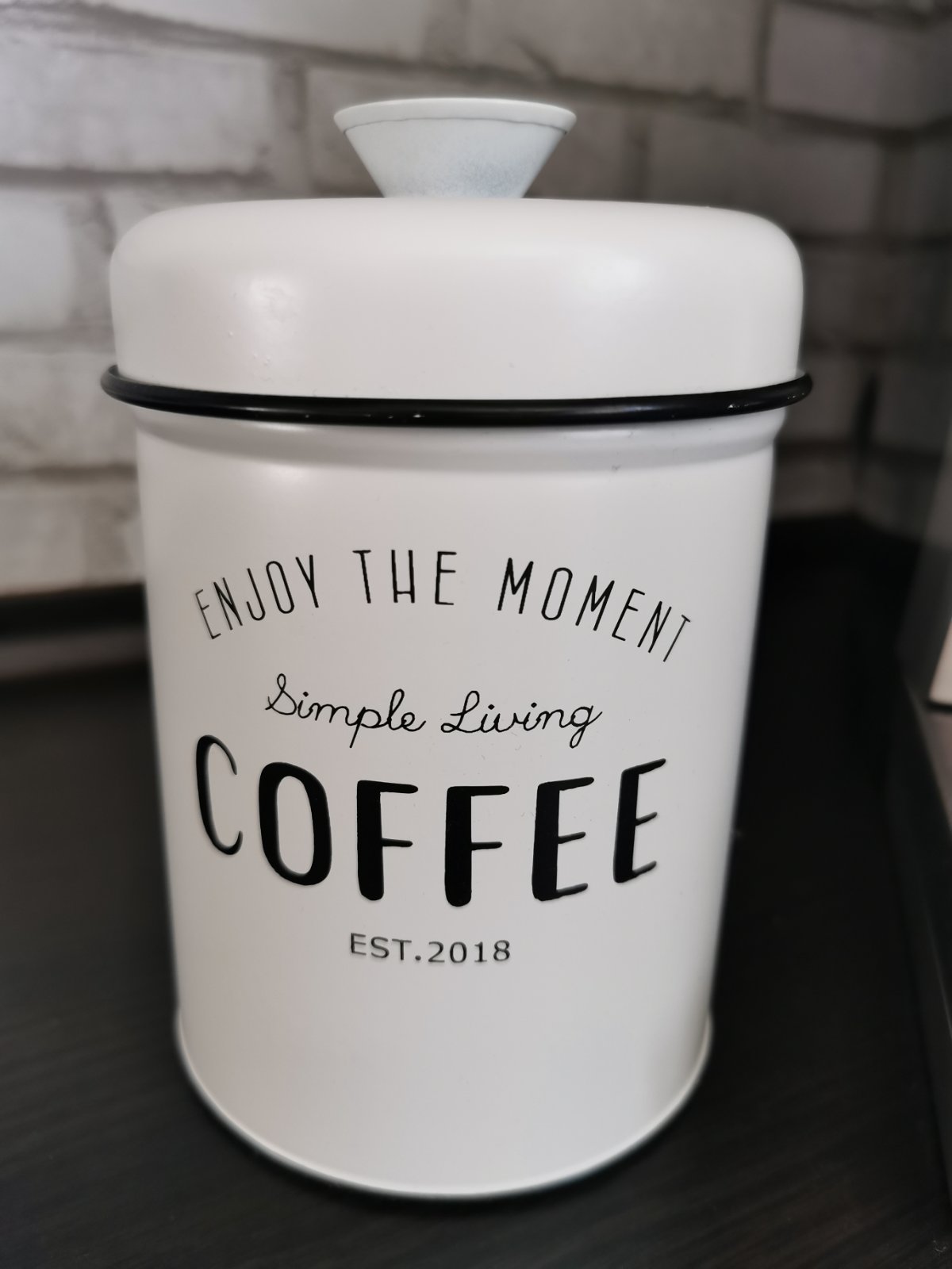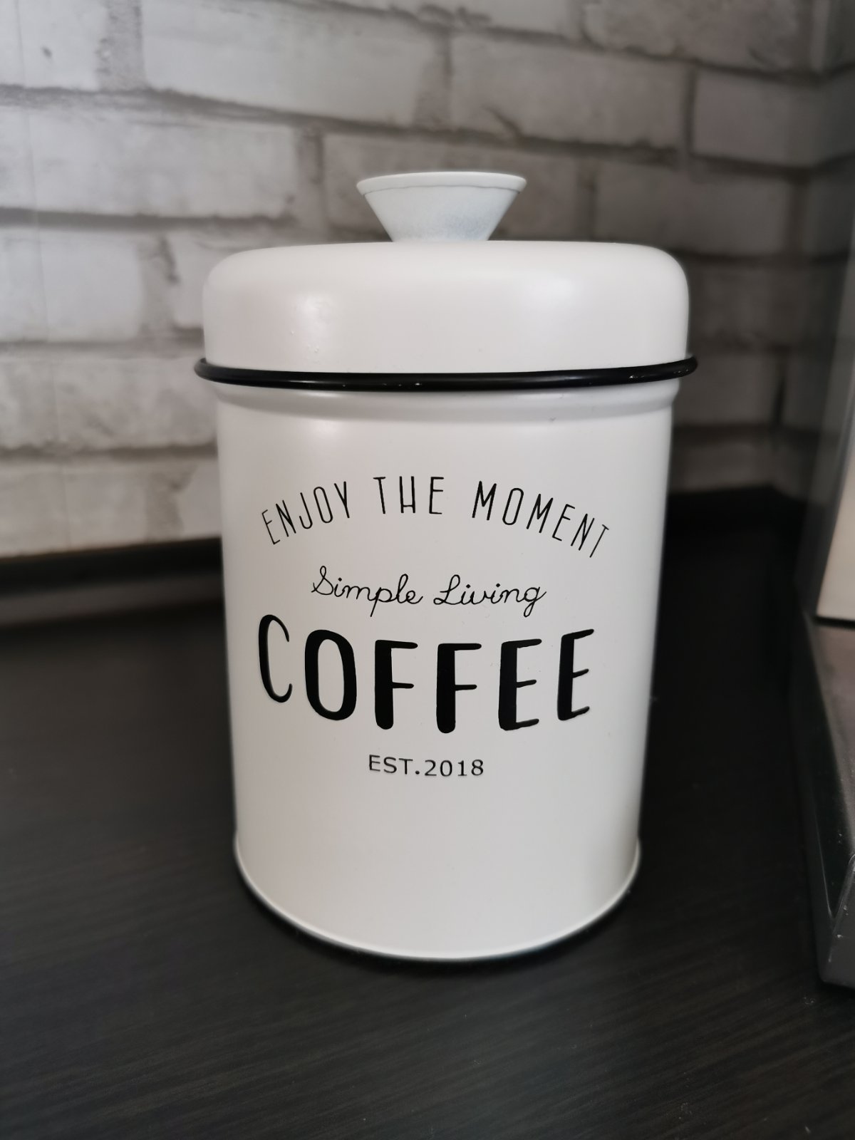 Plechová, biela nádobka na kávu