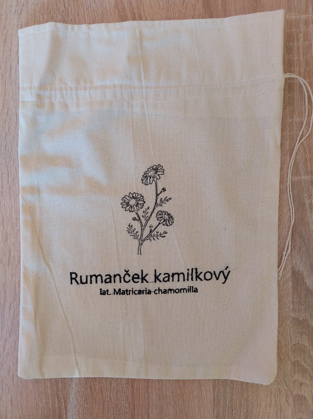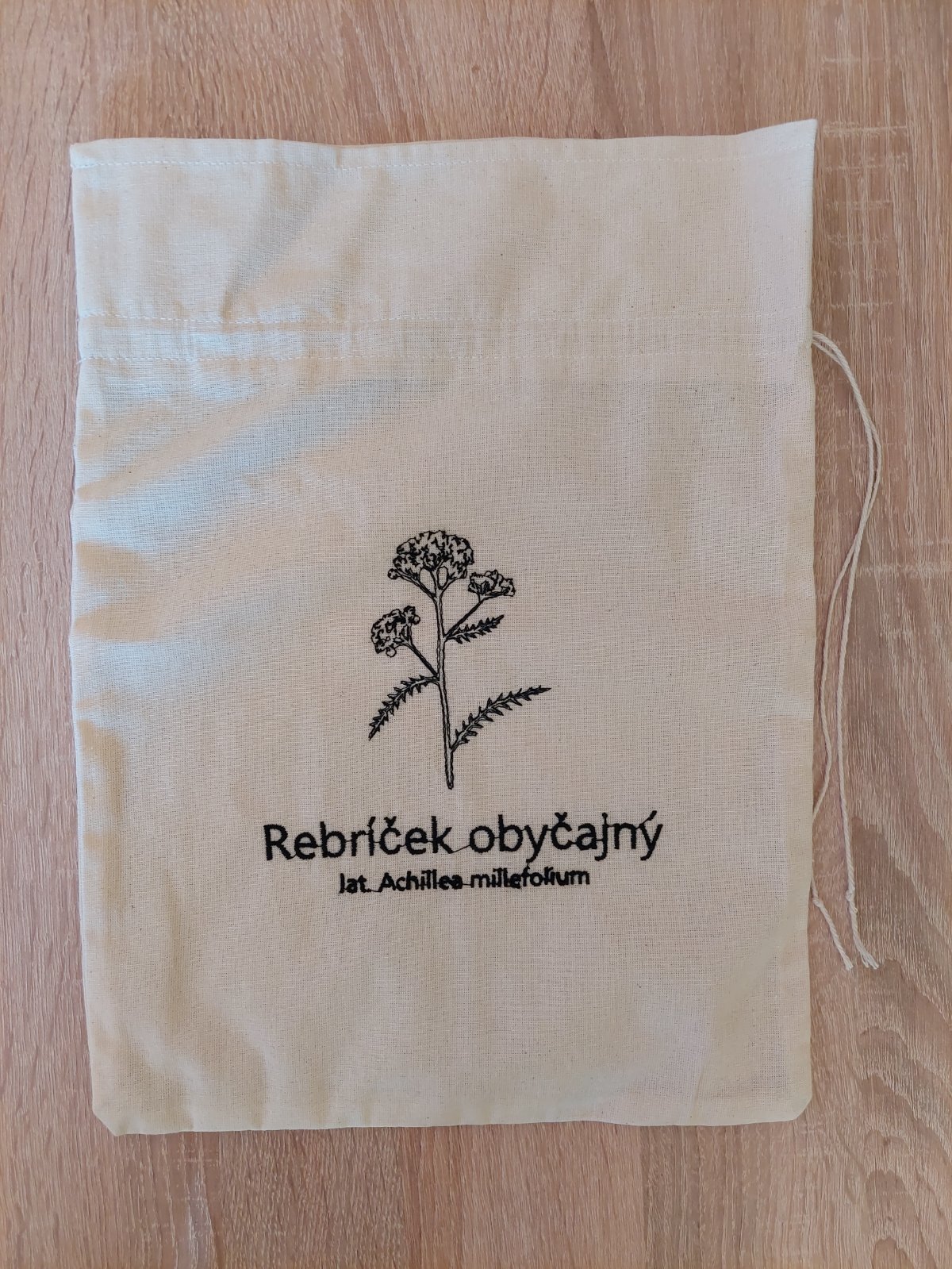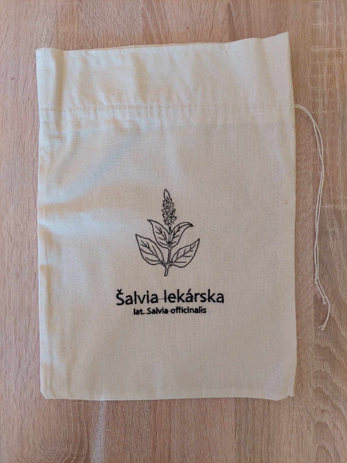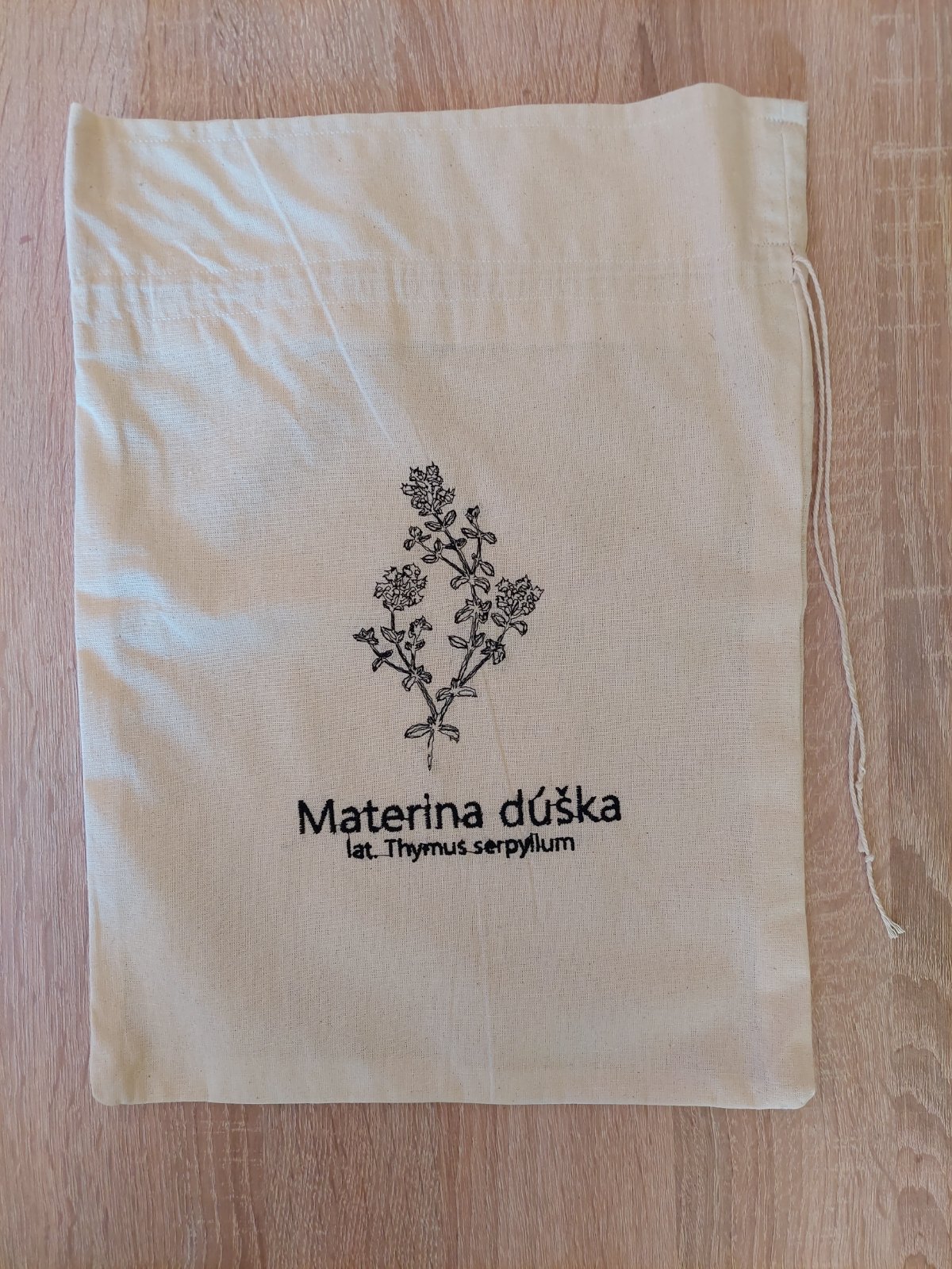 Vrecka su usite zo 100% reznej bavlnu urcenej na styk s potravinami. Nazov a bylinka je vytvorena strojovou vysivkou.