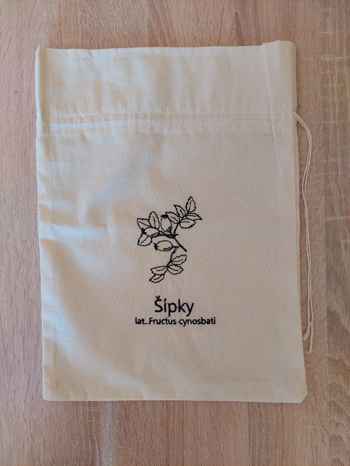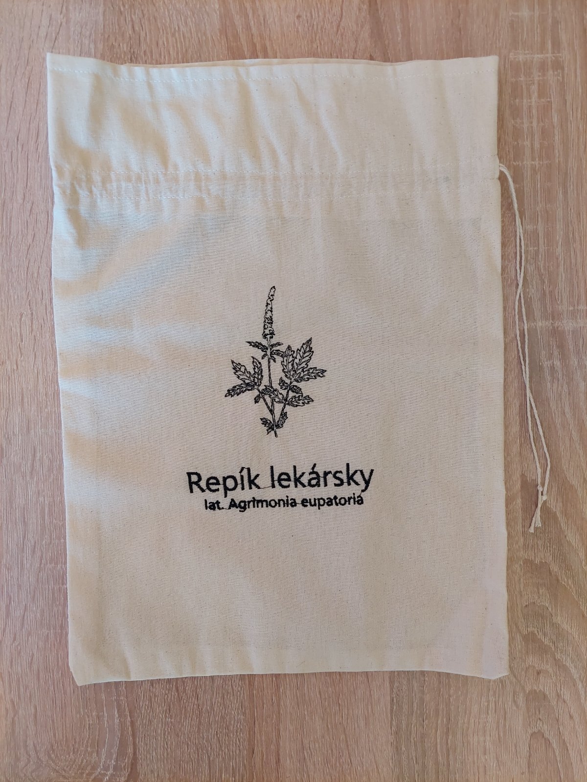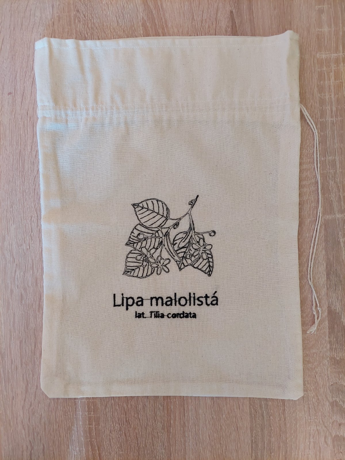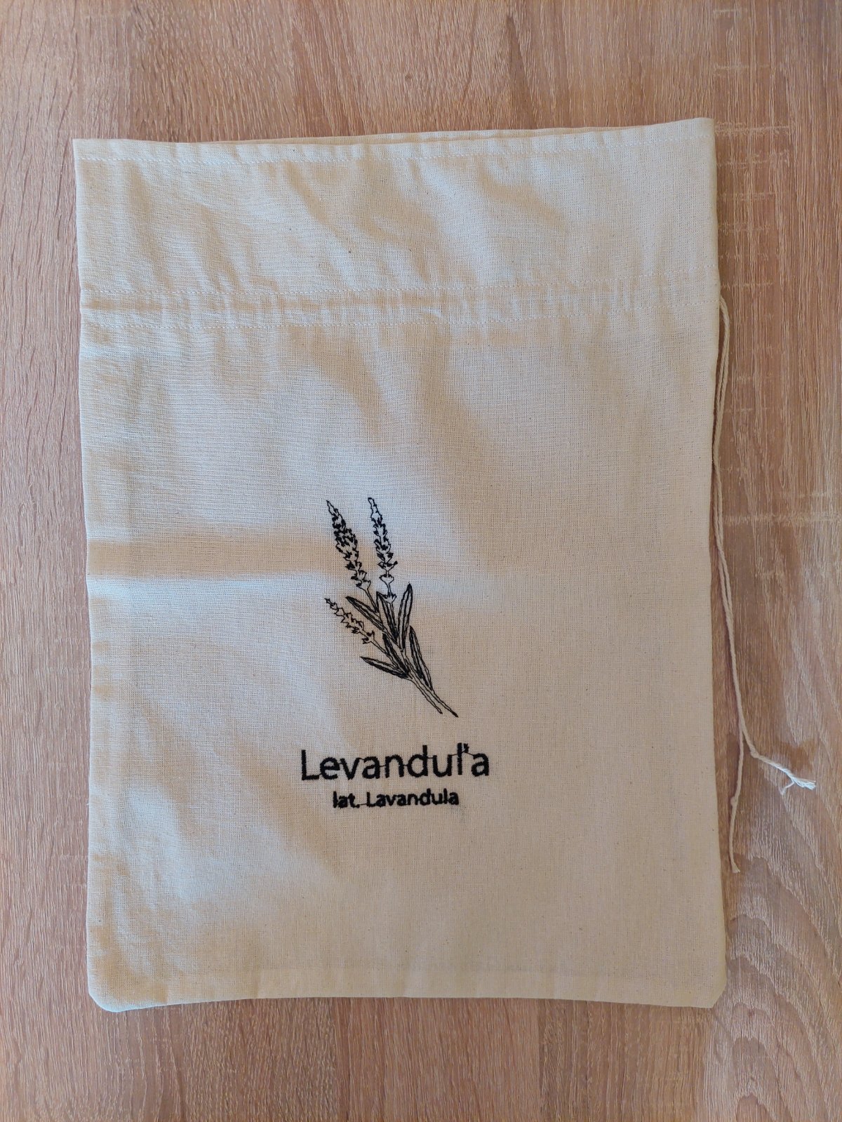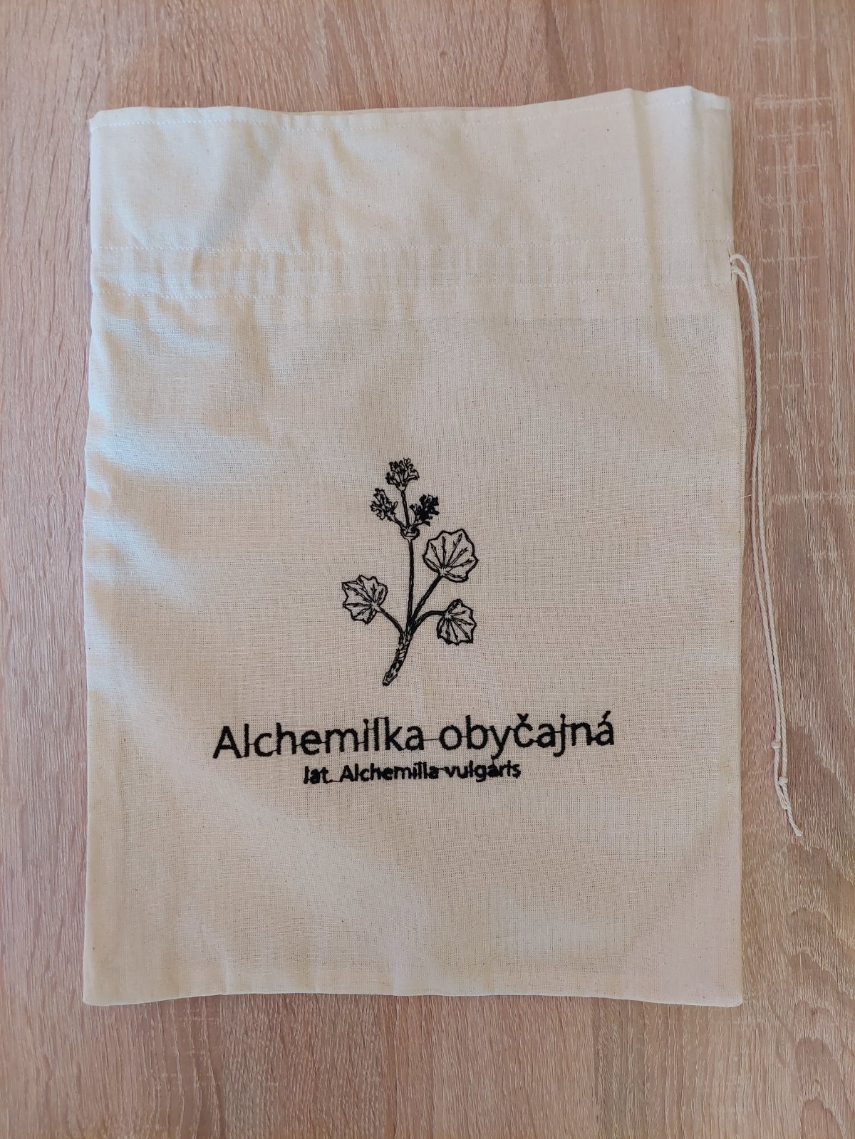 Vrecka su usite zo 100% reznej bavlnu urcenej na styk s potravinami. Nazov a bylinka je vytvorena strojovou vysivkou.