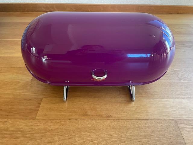 Ponúkame chlebník Wesco fialovo-baklažánovej farby v 100% stave bez poškodenia, bez škrabancov. Chlebník je kovový, budete určite spokojní.