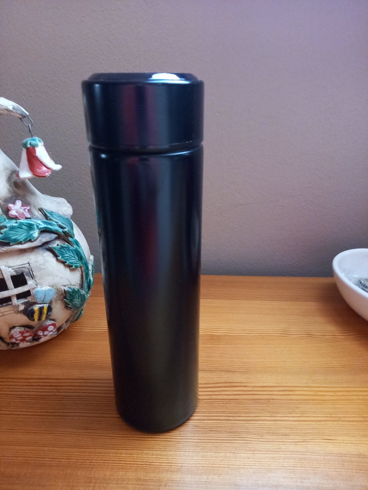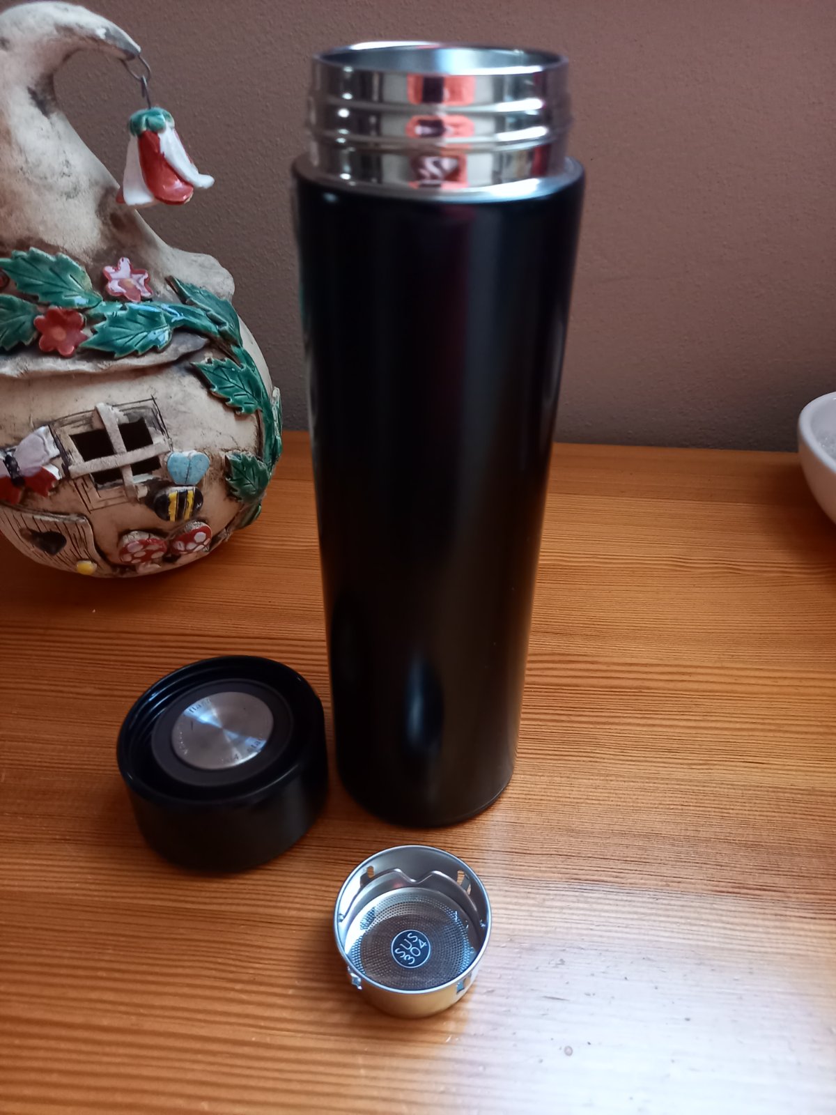 Inteligentná termoska,nepoužitá, zabudovaný LED teplomer na vrchnaku, vnútorný čajový luhovac. Objem 450 ml