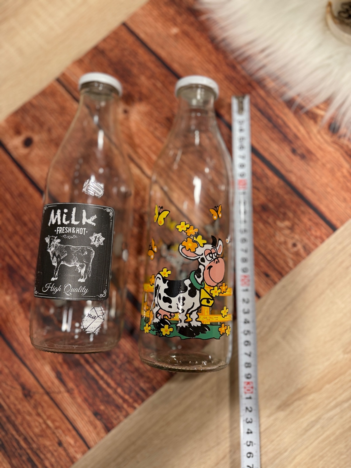 Sklenené retro fľaše na mlieko – 2 kusy