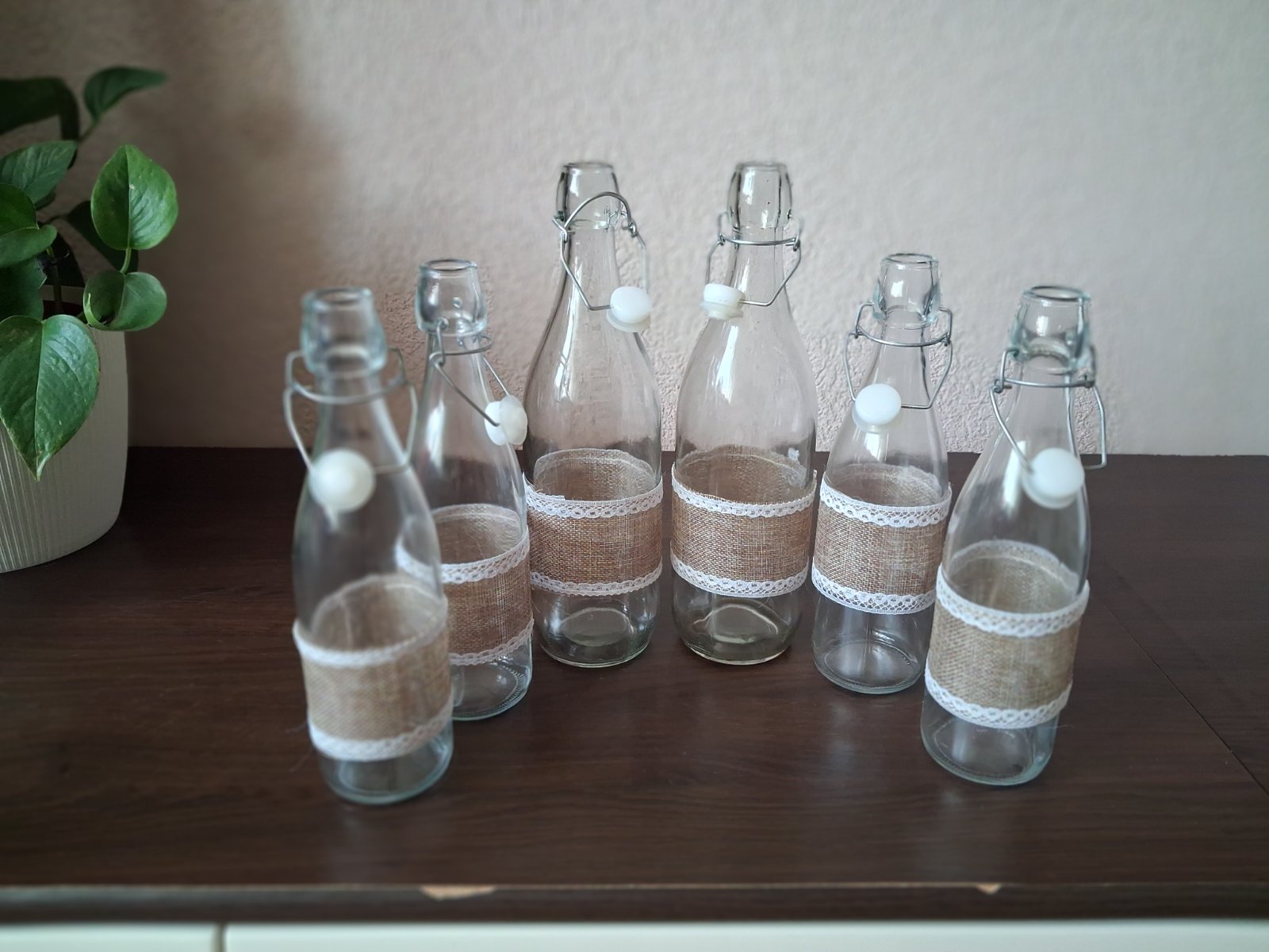 Fľaše s klip uzáverom 6ks, použite. 2flase s objemom 1liter, 4 Fľaše s objemom. 1/2 litra. Cena spolu 7€ + poštovné