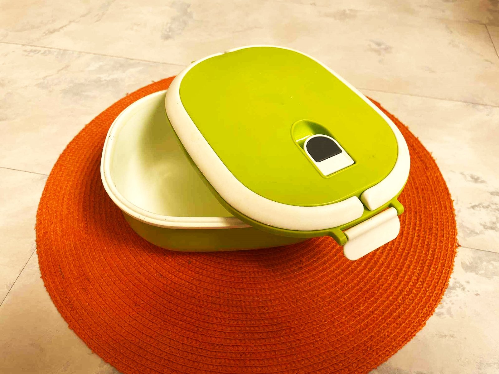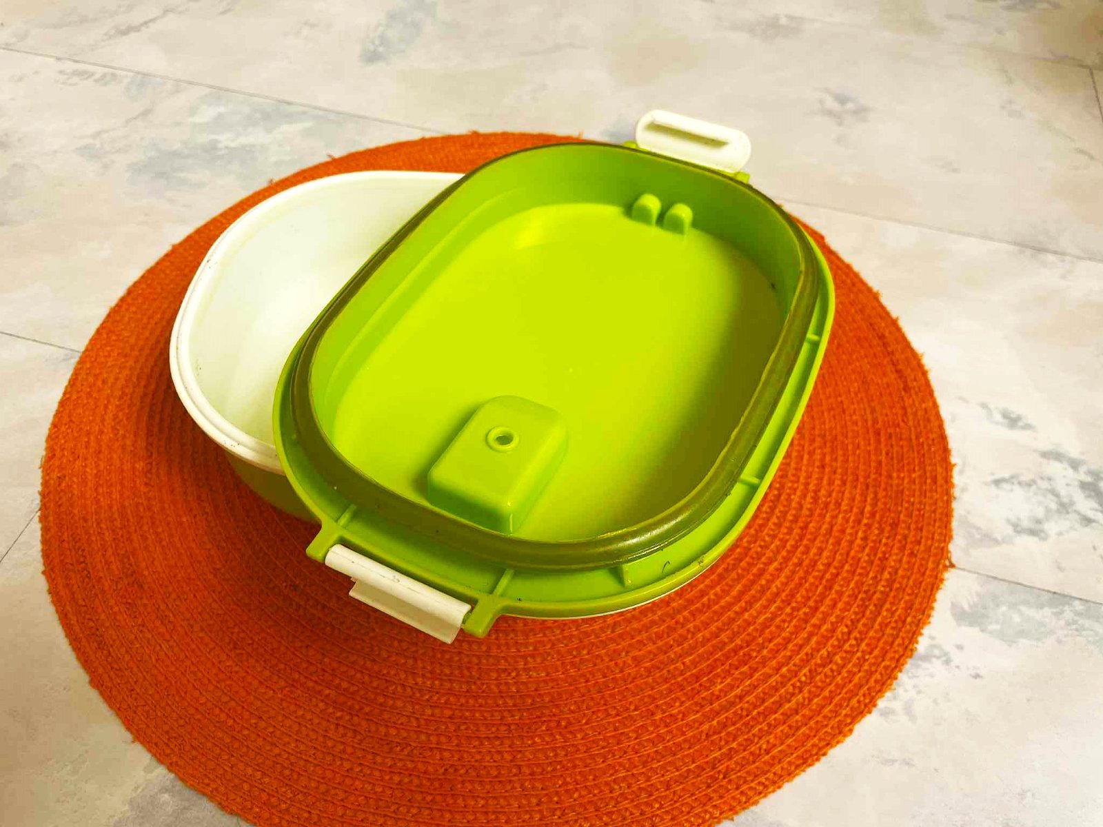 min.používaná,v krásnej farbe a kvalite, s ventilom na vrchu a výborným tesnením na veku,výška 8 cm, dlžka = 20 cm,vrch = 15 x 19 cm, výborná na cestovanie ale aj na uskladnenie do chladničky