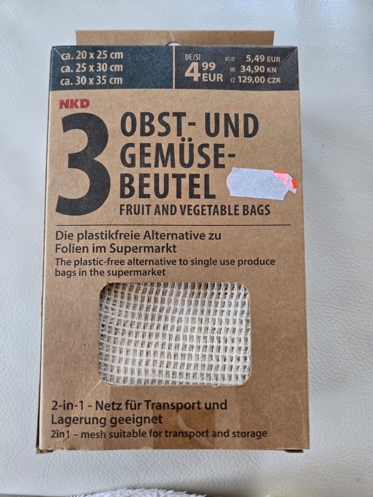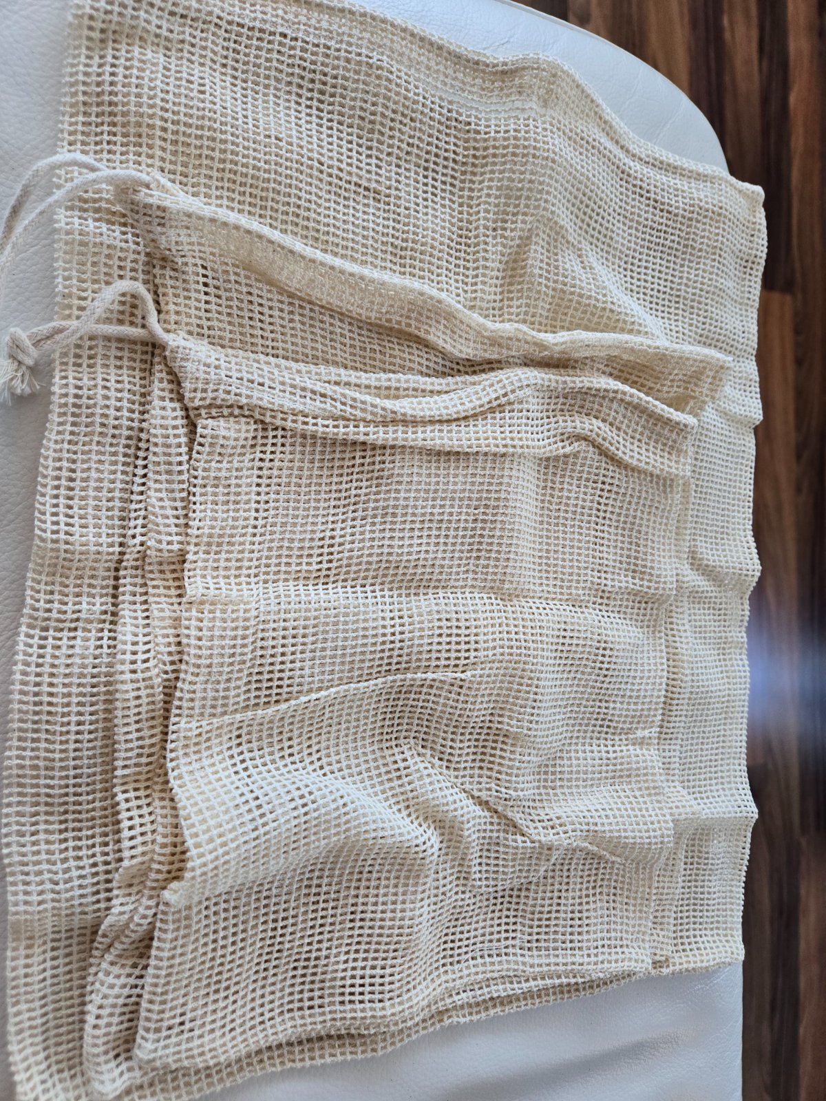 Nove vrecka na ovocie ci zeleninu, prírodný materiál, vbaleni sú 3 kusy, su v troch veľkostiach, rozmer na foto.