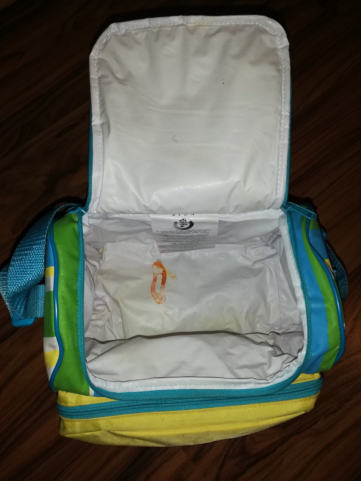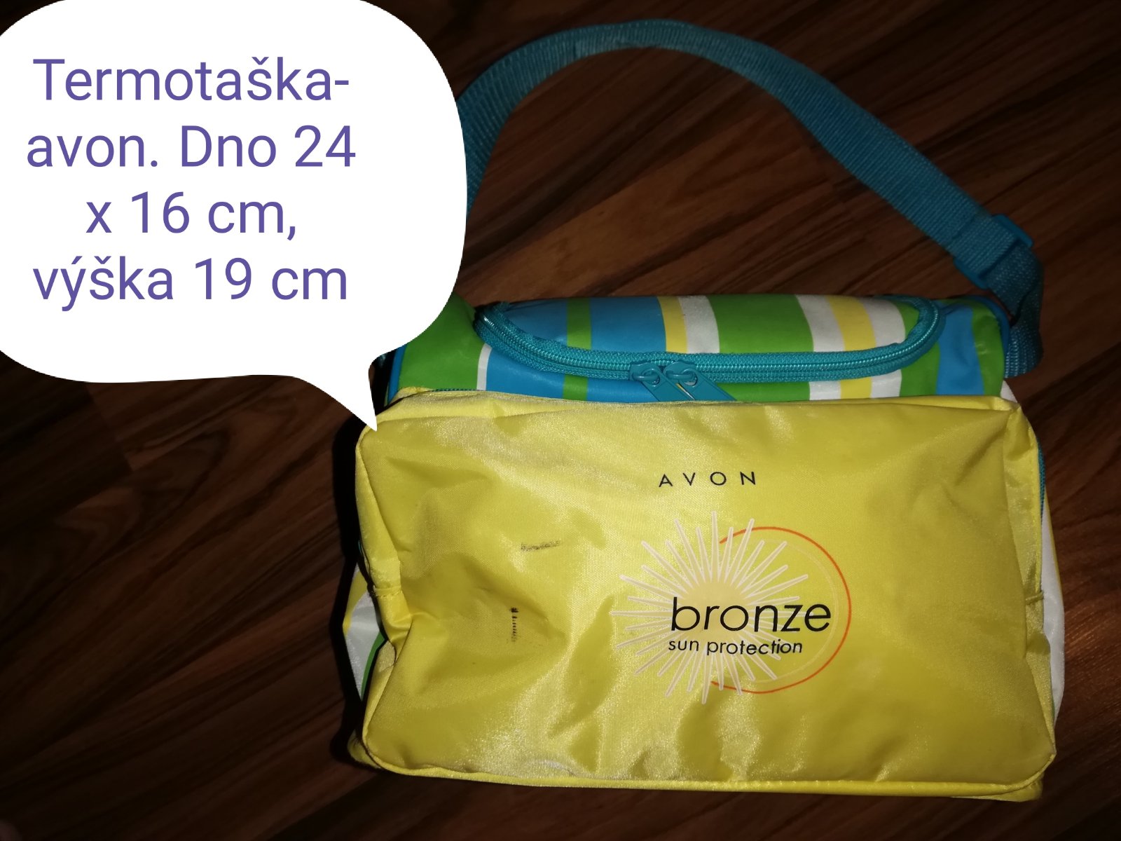 Malá dvojjvrstvova termotaska. Značka Avon. Veľkosť šírka 22cmx20cm, výška je 18cm.