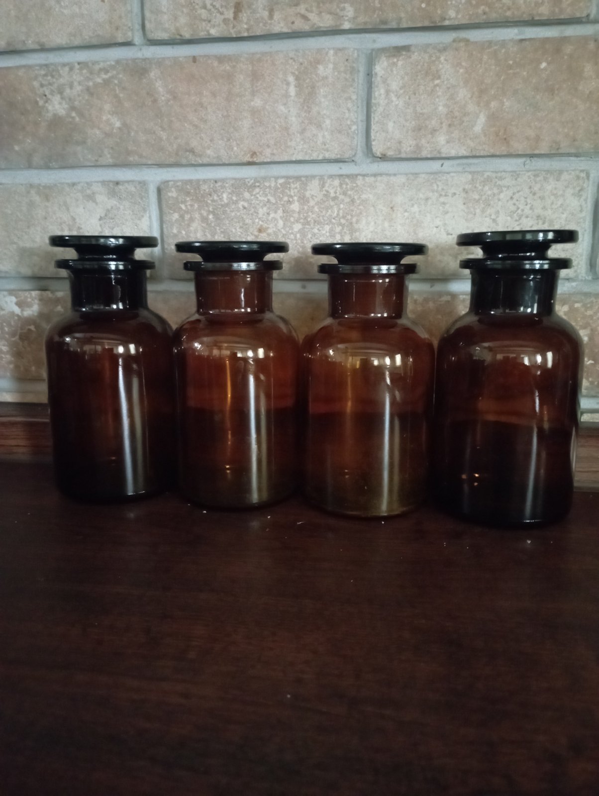 Lekárenske fľaštičky, hnedé sklo, výška cca 13cm