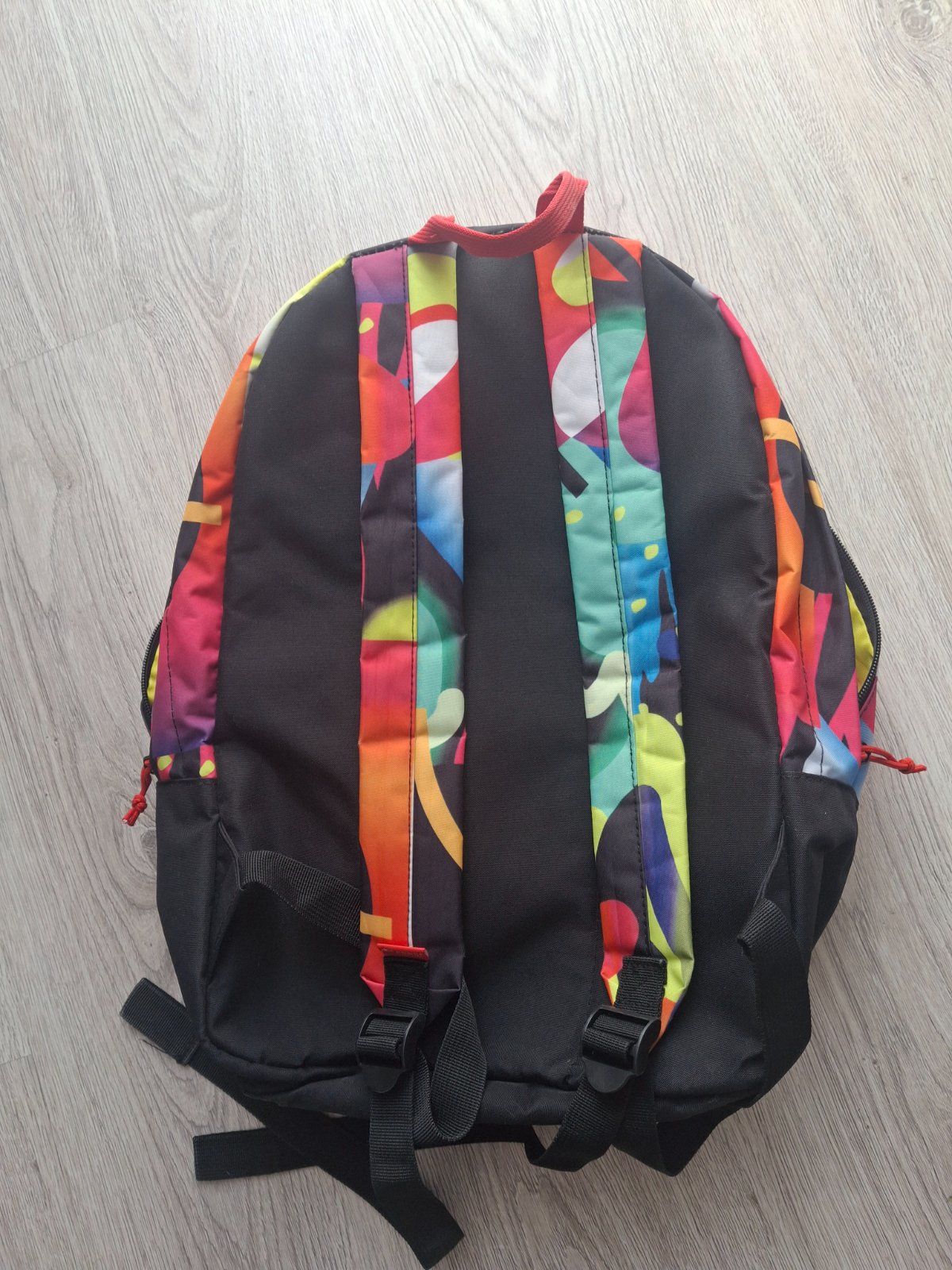 Pekná školská taška,kupovania nová.Stále pekná akurát reflexná časť z predu trochu suchnuta.Inak bez poskodenia.