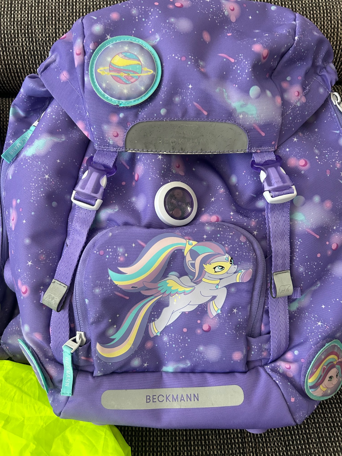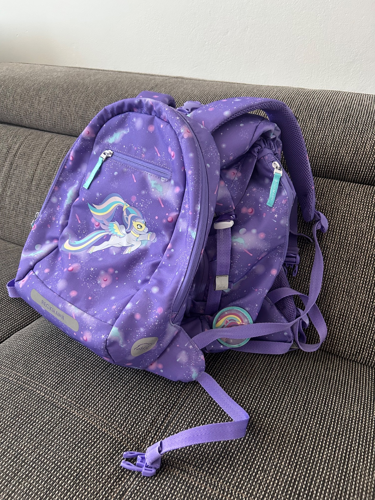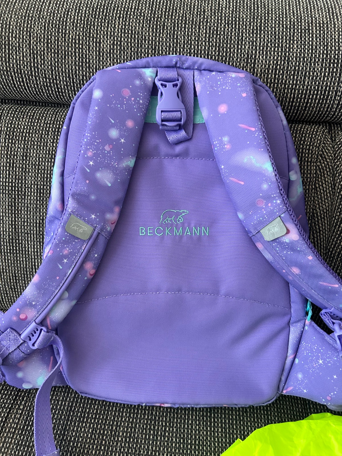 Batoh má nízku hmotnosť, perfektné odvetrávanie chrbtového systému, ergonomicky tvarovaný chrbtový systém s hliníkovou lištou, meniteľné obrázkové placky a bedrový pás odľahčujúci záťaž. K tomu hrudný popruh s nastavením výšky, mäkká výplň popruhov. Pracky všité v bedrovom páse, slúžia k pripnutiu prídavného menšieho batohu. Konštrukcia, tvar a veľkosť tašky BECKMANN je určená i pre drobnejšie deti. Má veľa reflexných prvkov a pláštenku proti dažďu. Vnútorný objem batohu je 22l.