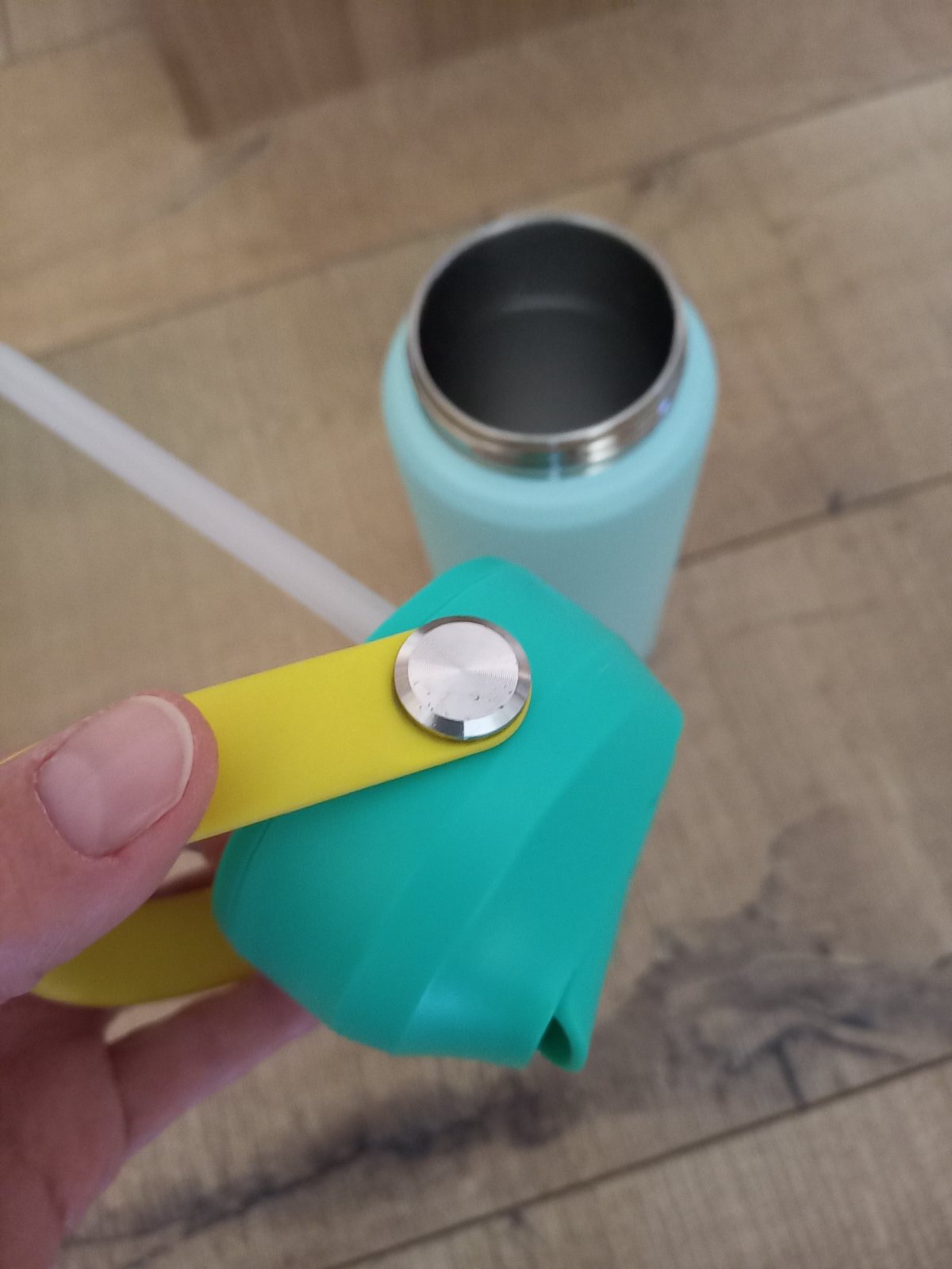 Nepouzivana termo flasa zn. Snow Monkey, objem 0.5 l. Prakticky uchyt, pitie cez slamku. Kupena do skoly v prirode, ale nakoniec sme mali inu.