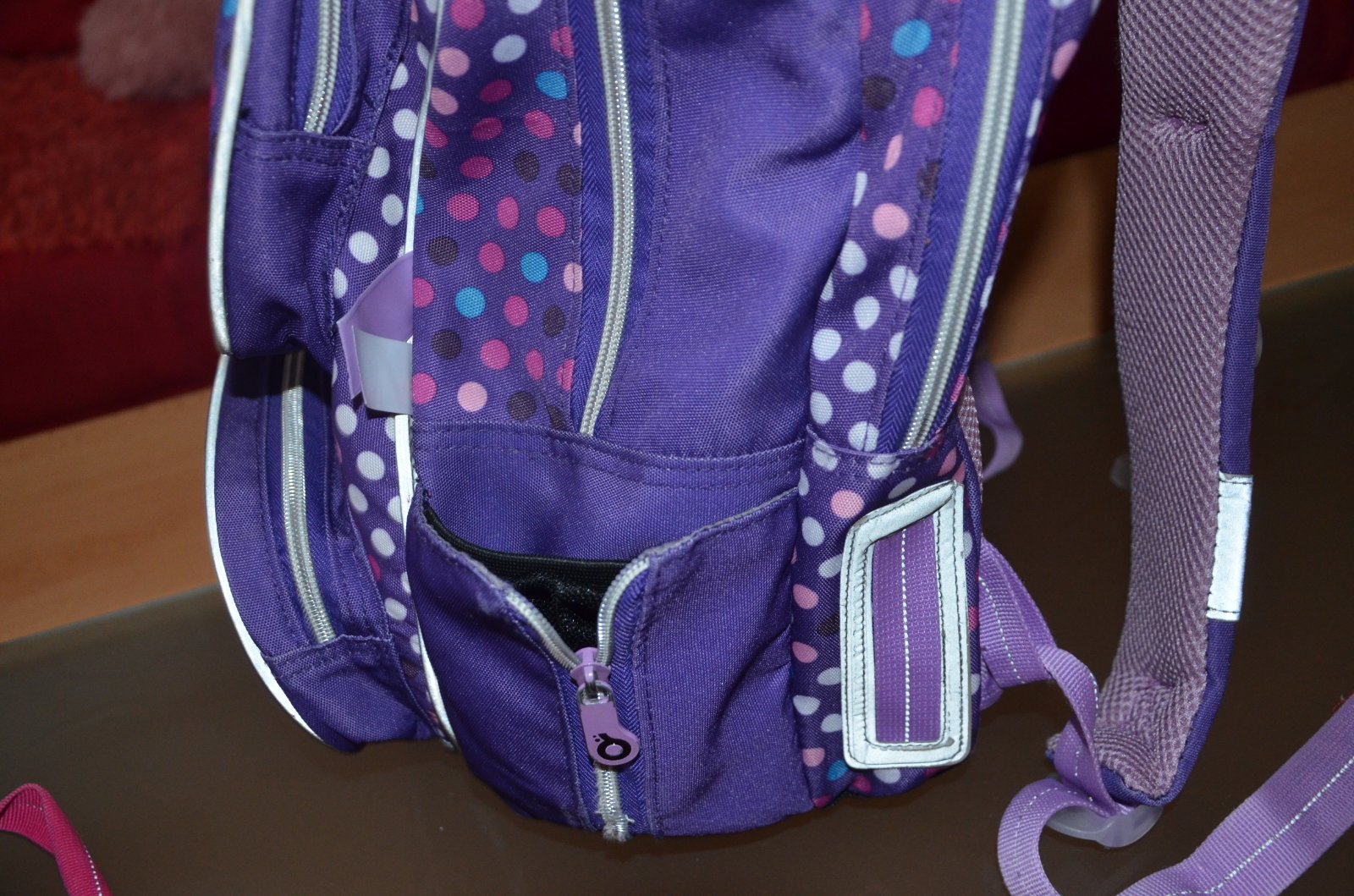 Na čele tašky sú dve praktické menšie vrecká. My sme využívali hornú na desiatu a spodnú na kľúče a drobnosti.