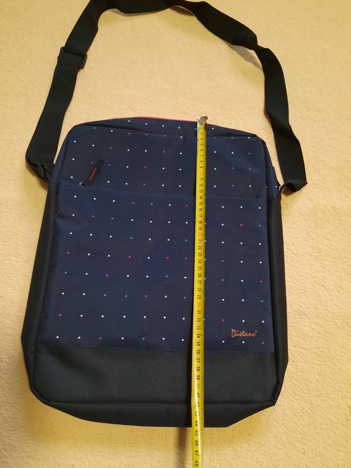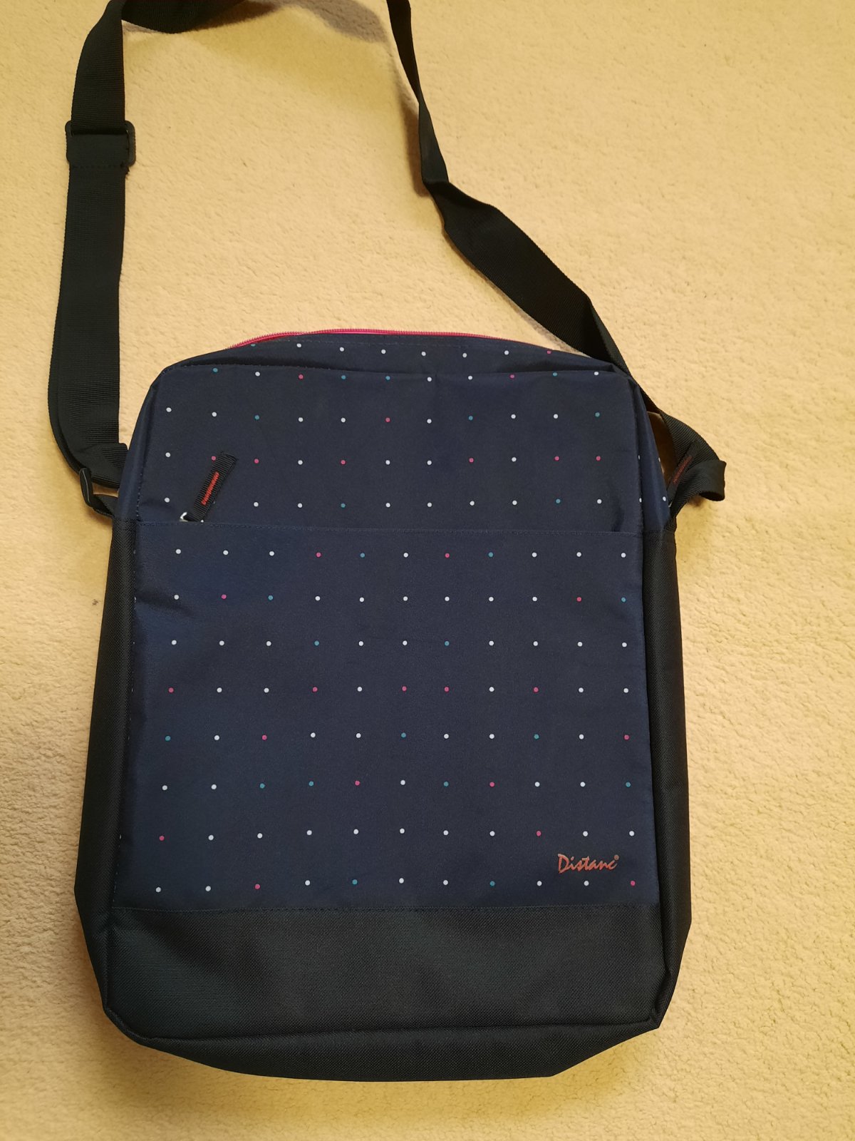 Nová, nepoužitá taška, vhodná napr na krúžky. Tmavomodrá s ciernou, drobné farebné bodky. Rozmer cca 43x33 cm. Dohoda mozna