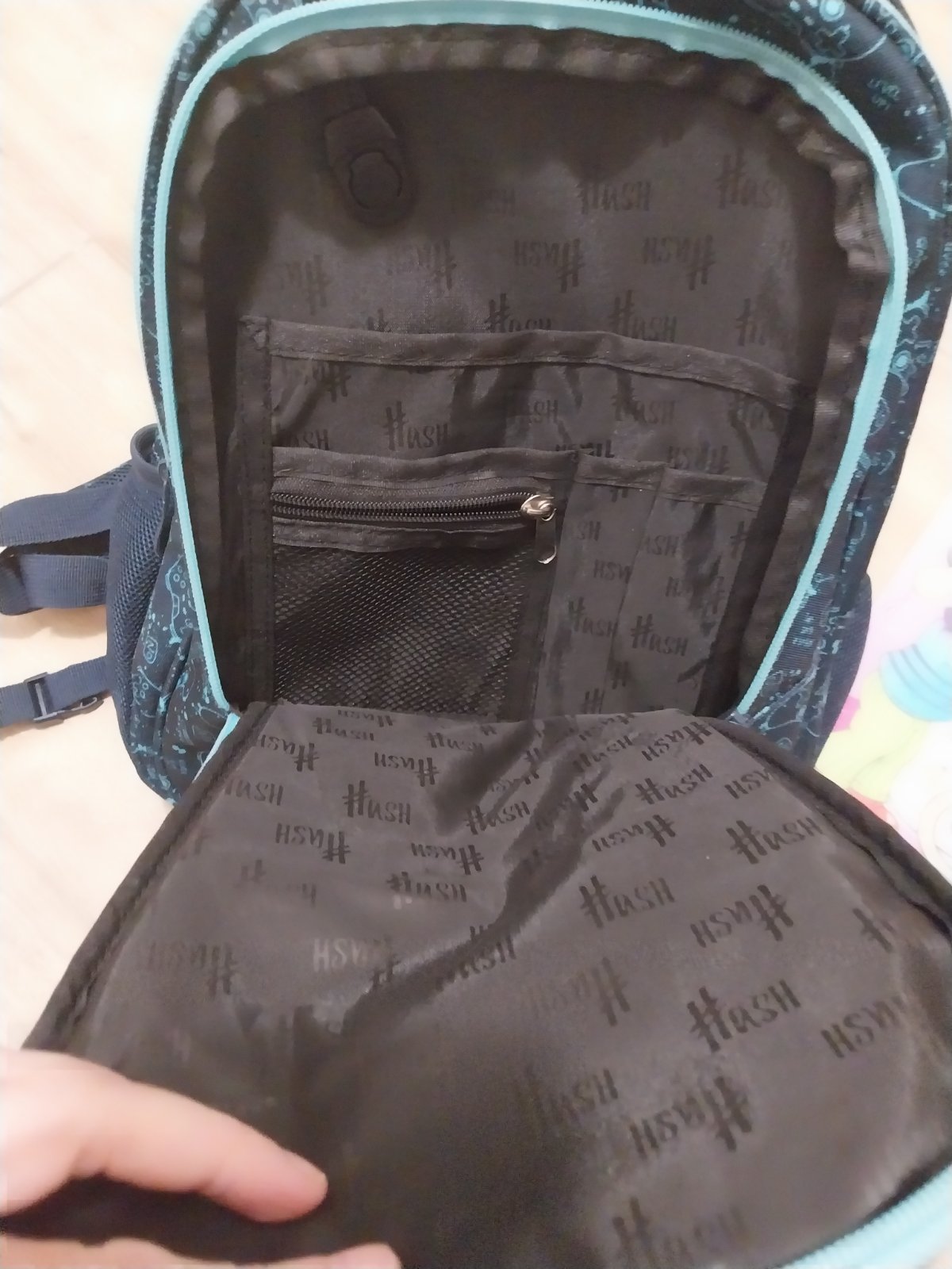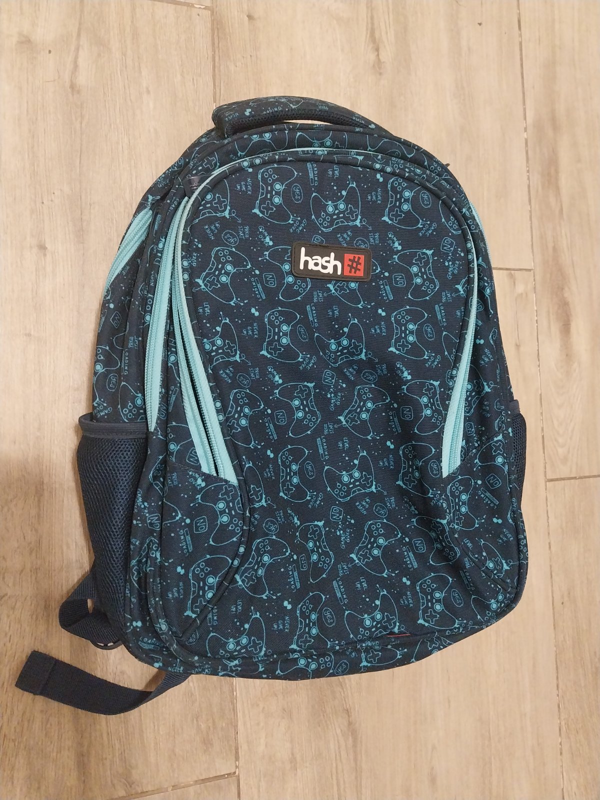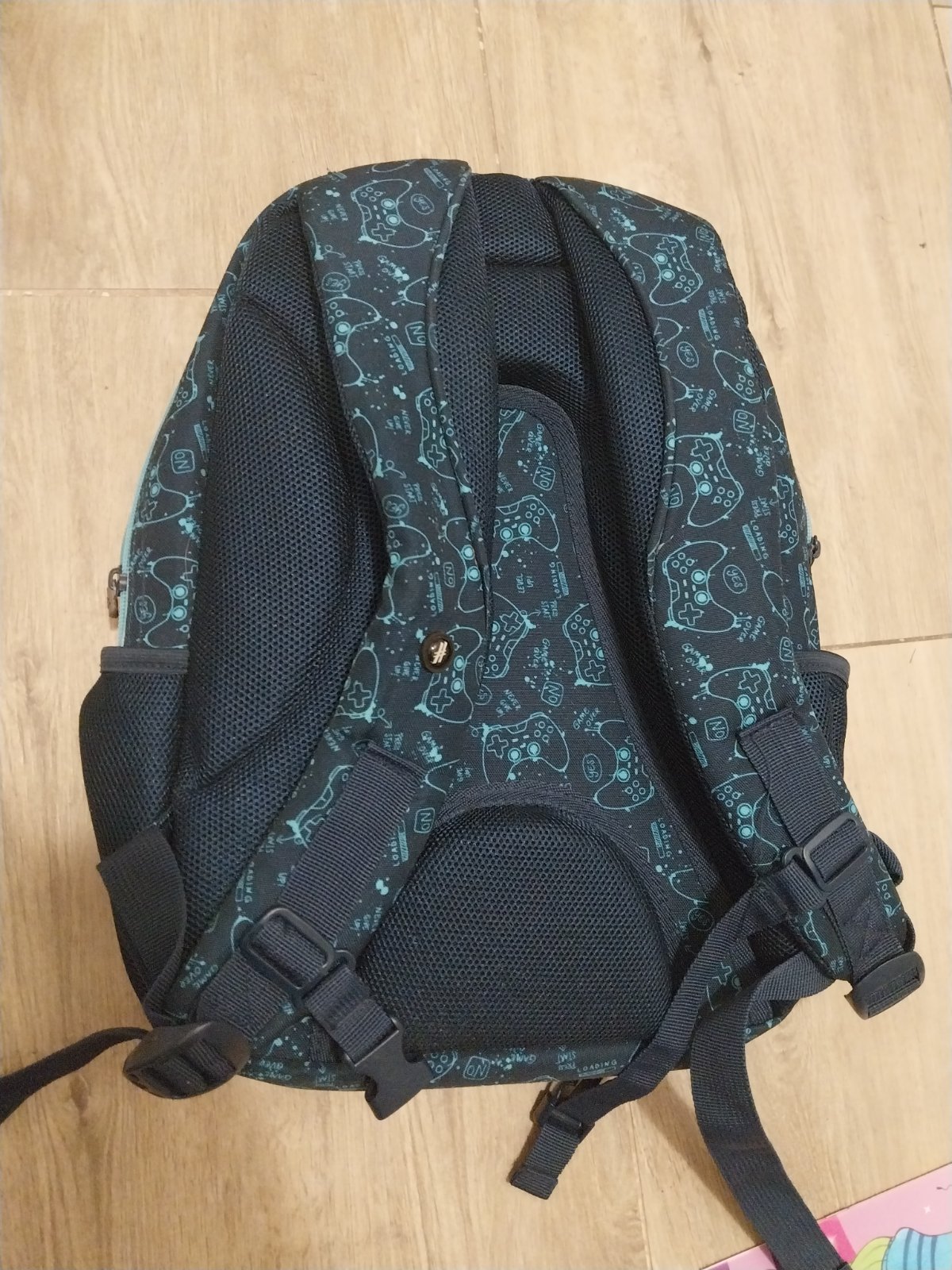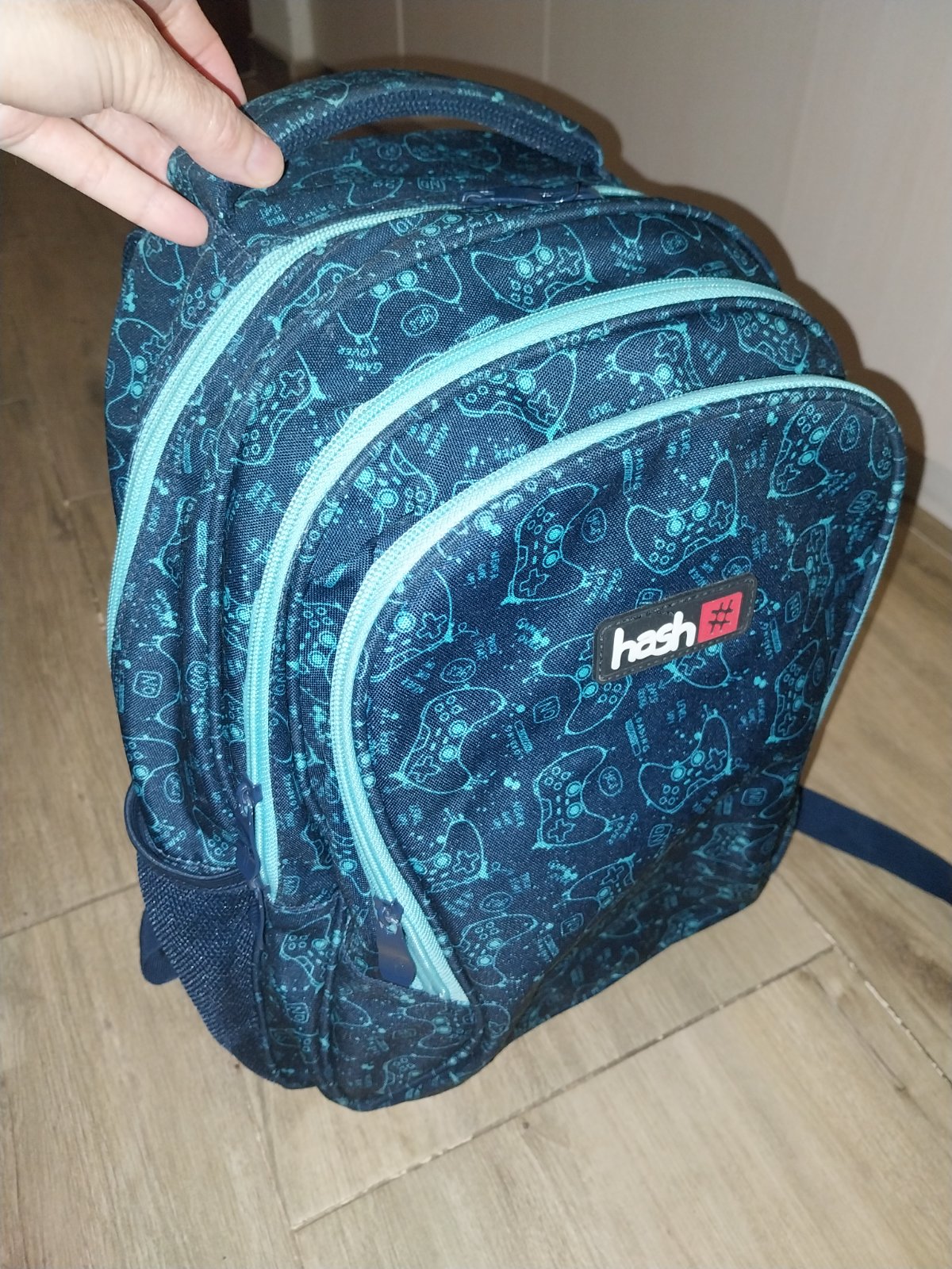 Tmavomodra skolska taska Hash s makkym polstrovanim na chrbte, 3 velke priehradky a bocne vrecka.
