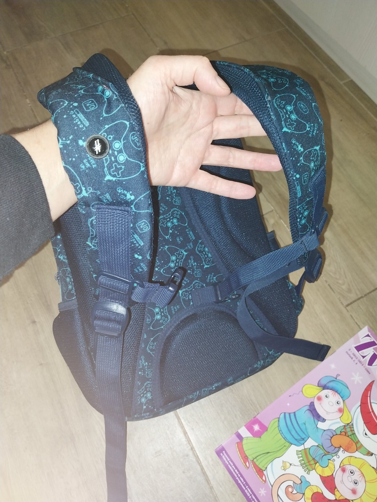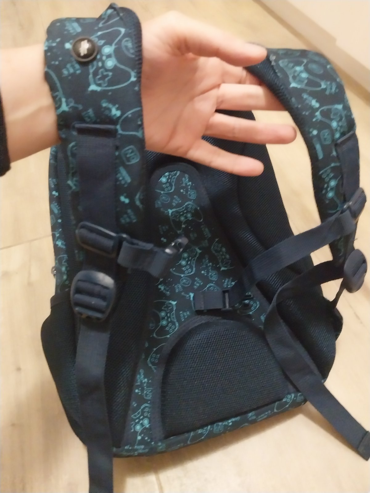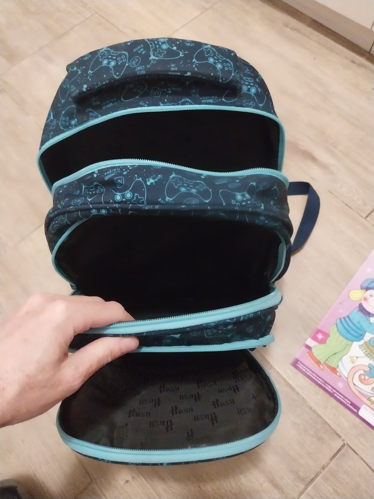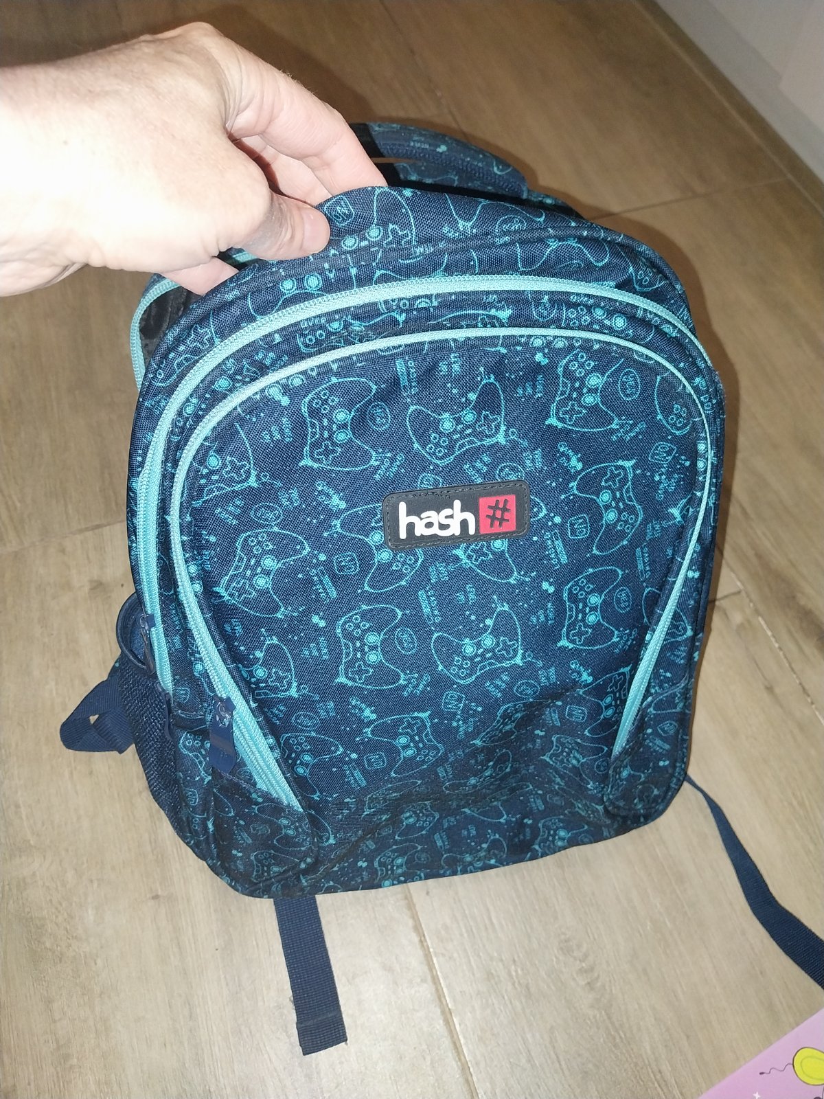 Tmavomodra skolska taska Hash s makkym polstrovanim na chrbte, 3 velke priehradky a bocne vrecka.