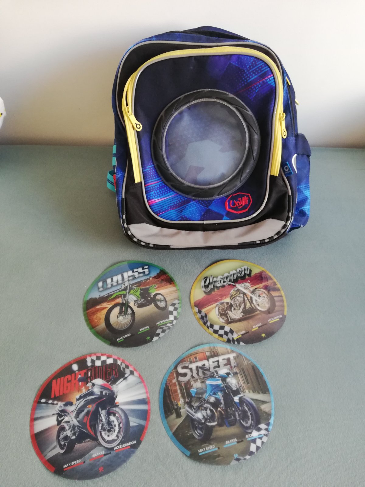 Taska pre skolaka od 1.-4.roc. Priestranna, pevna bez poskodenia.Kvalitne zipsy, daju sa menit obrazky na taske. Taska je vo vybornom stave, len drobne suchnutia na spodu a po bokoch tasky od pouzivania, nic moc viditelne..Stale krasna a cista. ..Najlepsie osobny odber.