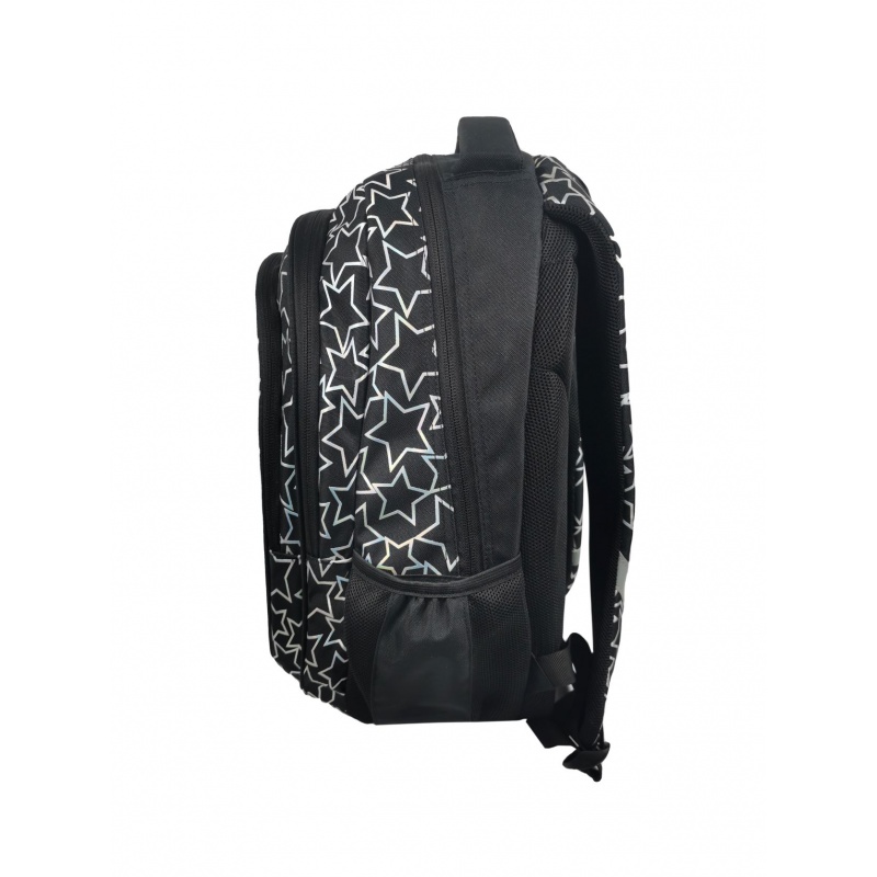 Klasický študentský / školský batoh určený pre školákov základných aj stredných škôl. Ergonomicky tvarovaný chrbtový systém s polstrovaním spolu s dĺžkovo nastaviteľnými ramennými popruhmi zaistí pohodlné a bezpečné používanie tohto batohu. Hviezdičková potlač má holografický efekt.