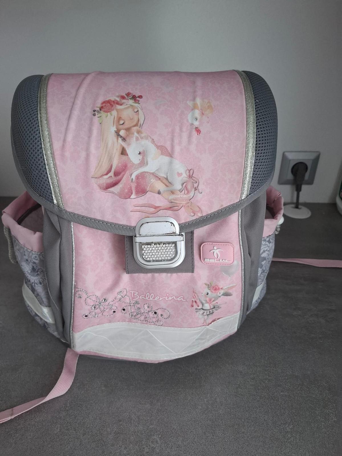 Ľahká a praktická taška pre prváčku. Taška bola používaná 2 roky, má škrabance (foto). Je v peknom stave nikde sa nepára, netrhá. Pribalim aj peračník, vrecúško, nové farby a fľašu. Treba prirátať ...