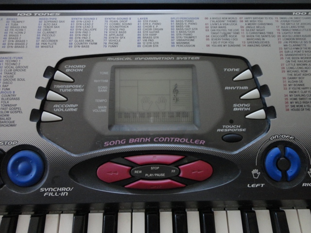 - Ovládač banky skladieb - Ovládacie prvky podobné CD prehrávaču (prehrávanie/pozastavenie, zastavenie, prevíjanie vzad, vpred) pre okamžité zoznámenie.