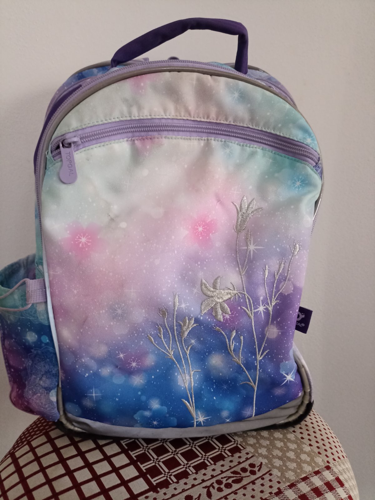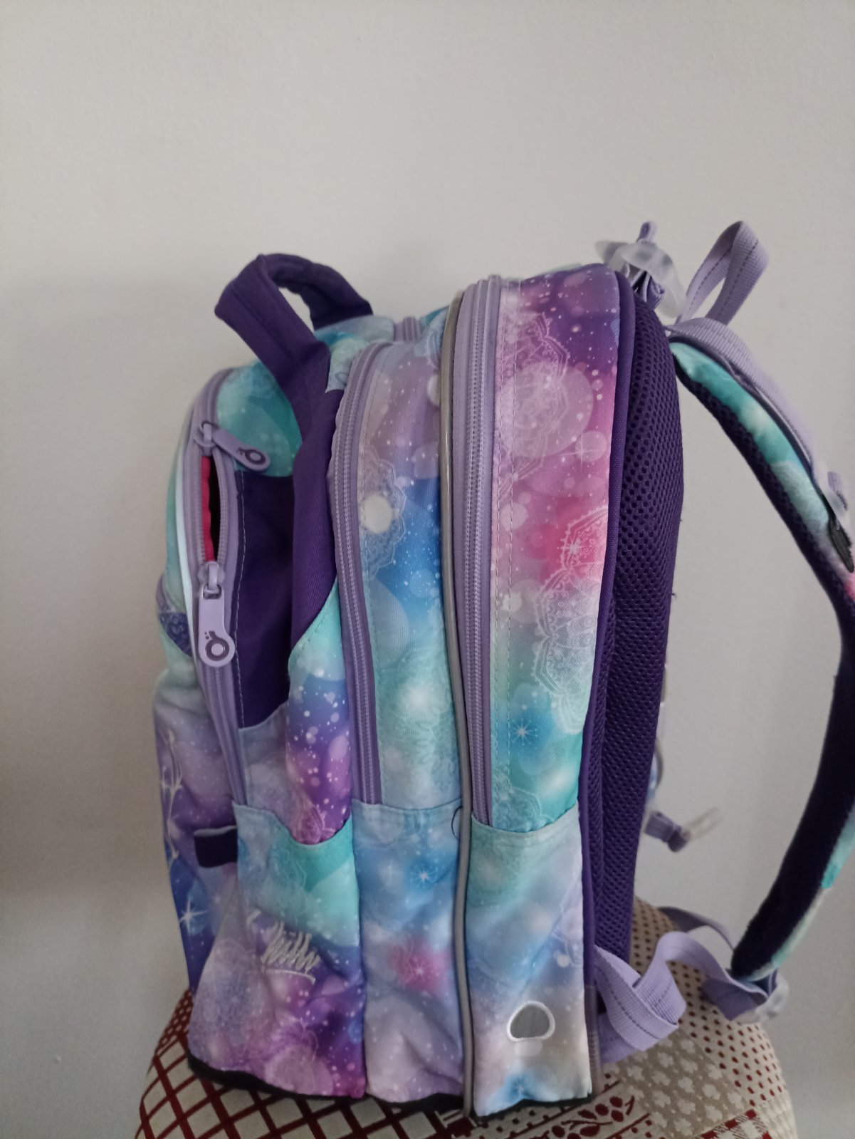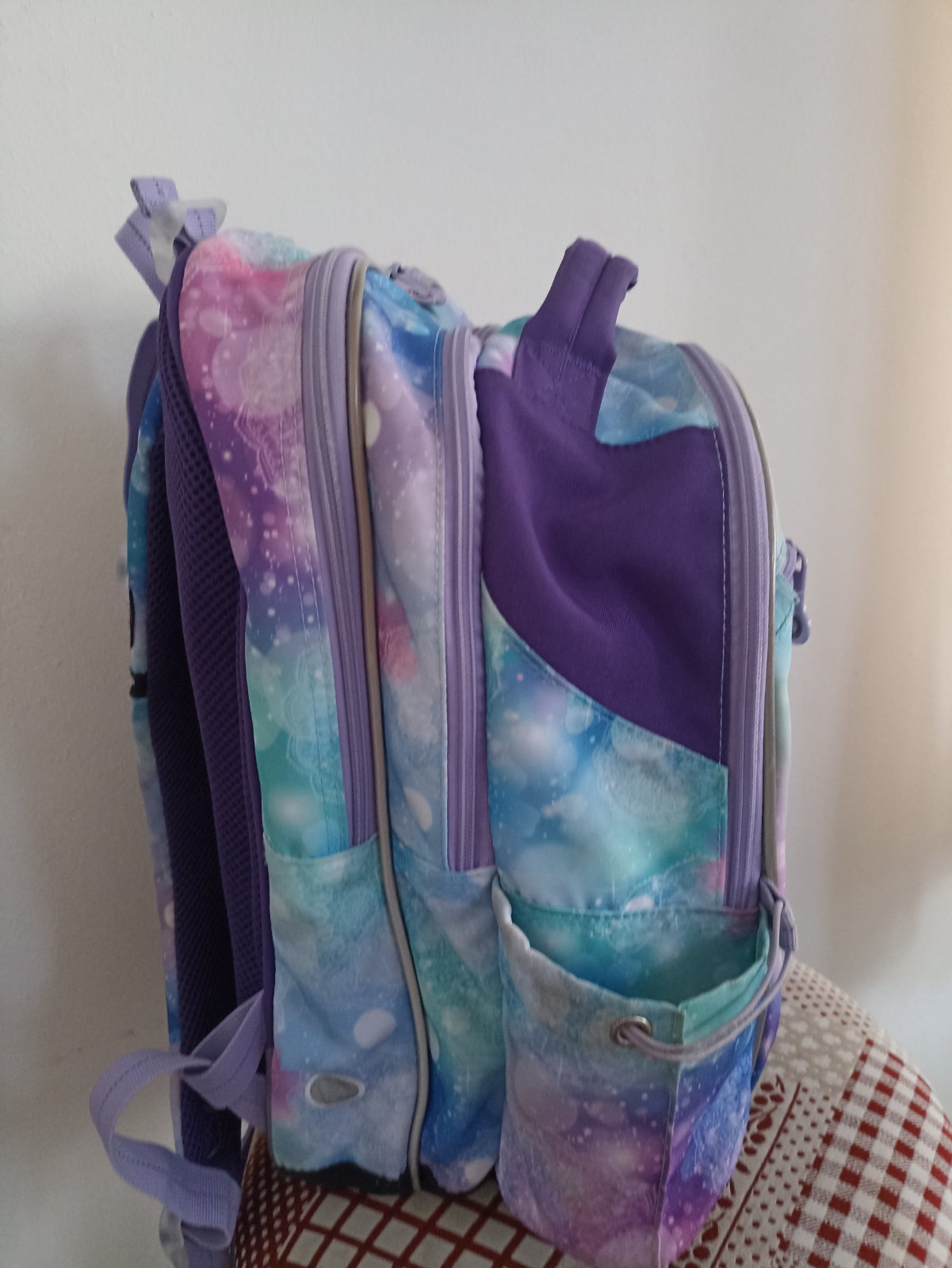 Batoh bol noseny veľmi krátko, nemá funkčné poškodenia. Vystužená chrbtová časť, nastaviteľné popruhy, veľmi ľahká na nosenie. Praktické priehradky. Reflexné prvky. Frozen Elza Anna