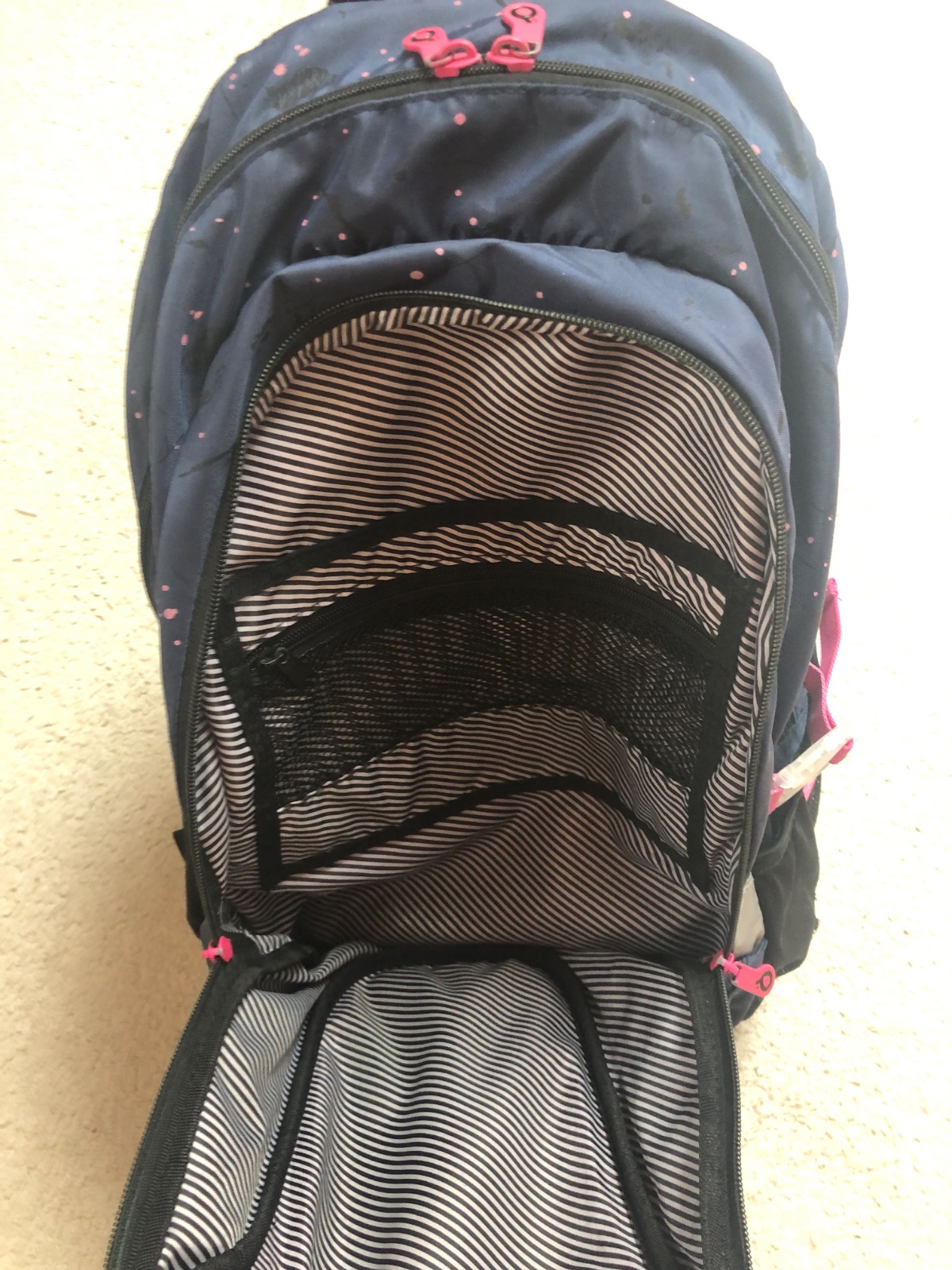 Batoh je v super stave, len na bocnych sietkach su mini dierky, da sa to zasit, takmer nevidiet. Zohladnene v cene.