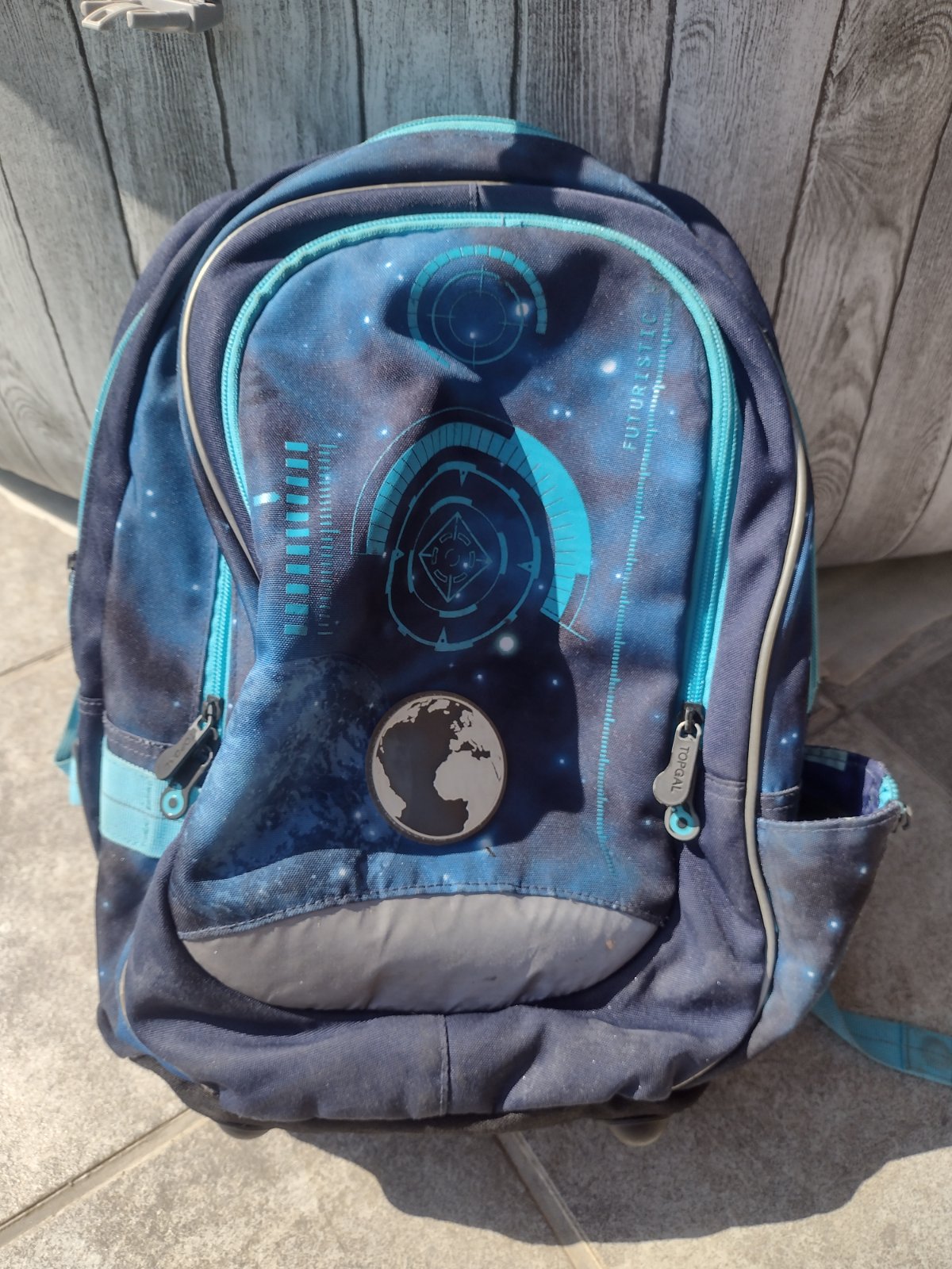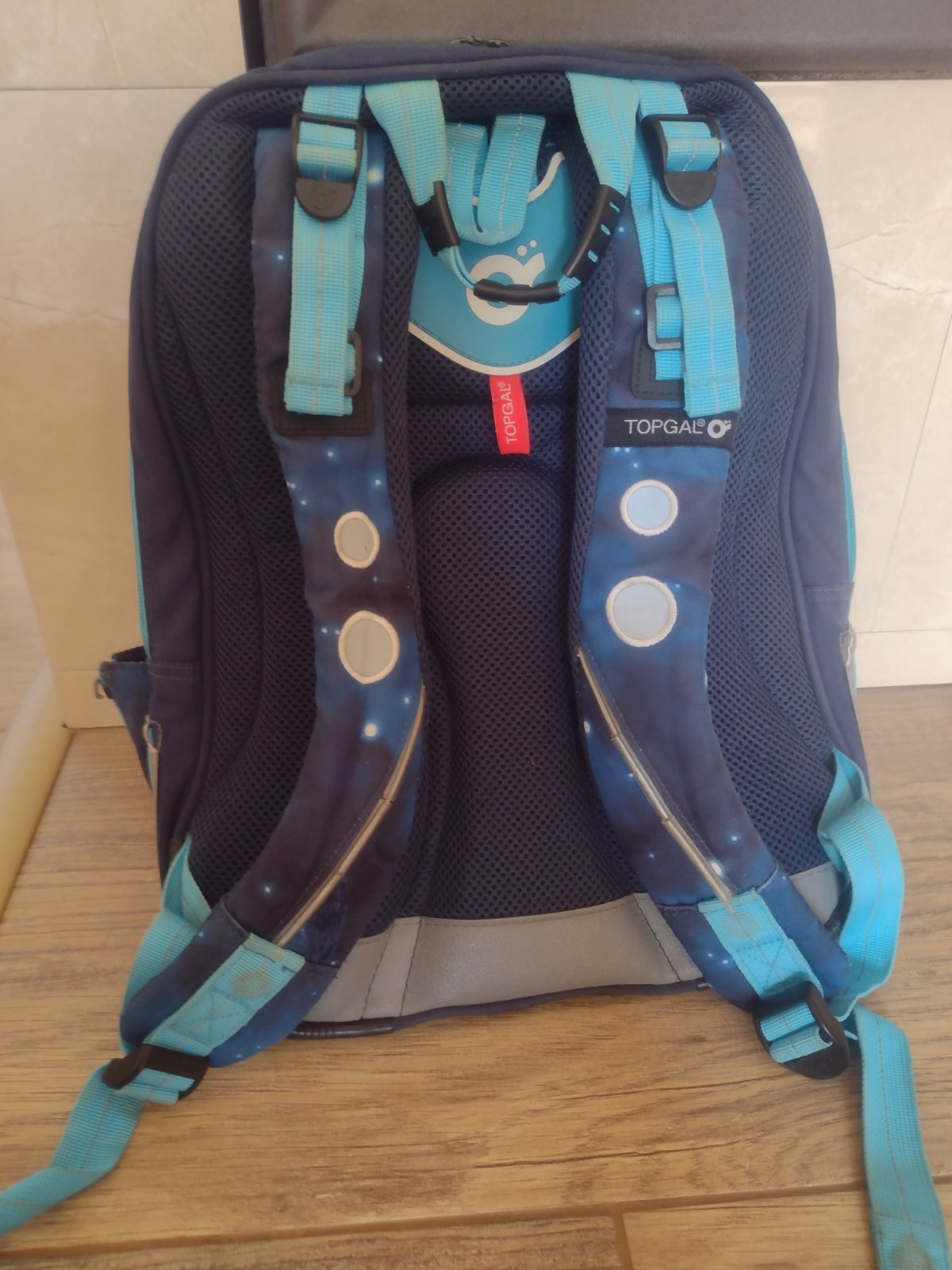 Školský bahot zn. Topgal, nosený, určený na donosenie. Bežné známky nosenia. Ergonomický tvarovaný, reflexné prvky. Jediné poškodenie, čo som našla rúčka no nosenie zvrchu viac ošúchaná (viď. foto).