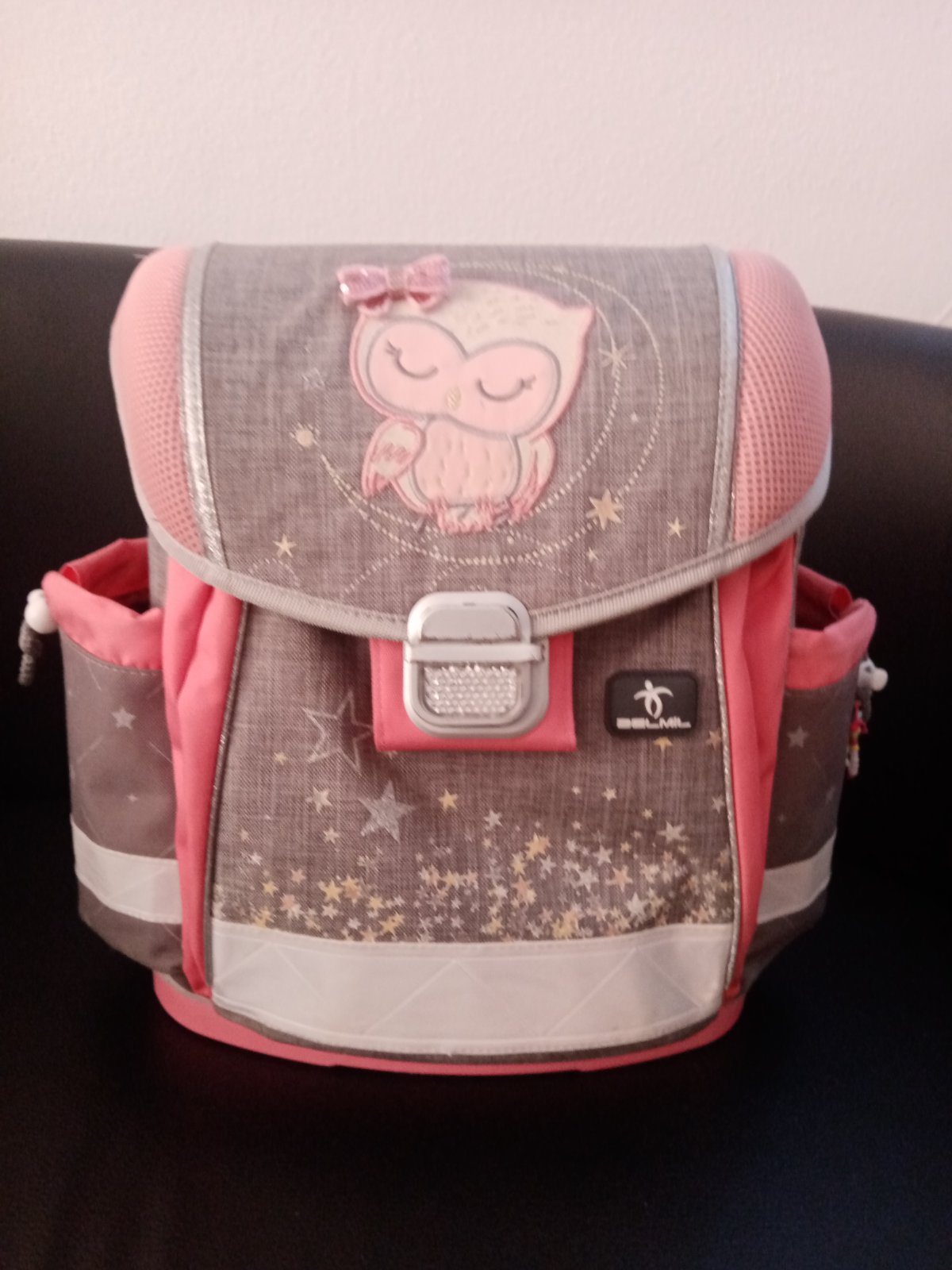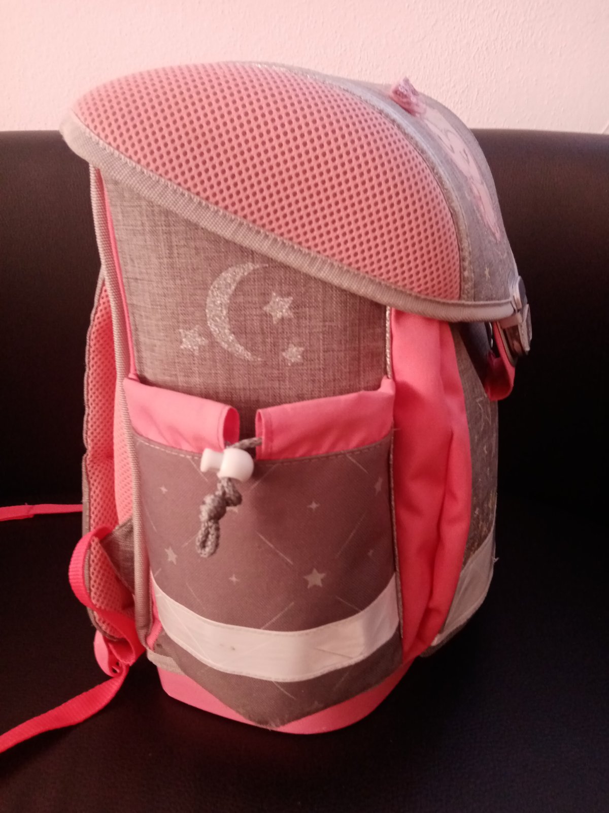 Školská taška pre prvý stupeň. Používanim trochu ošuchaný predný reflexný pás (viď foto).