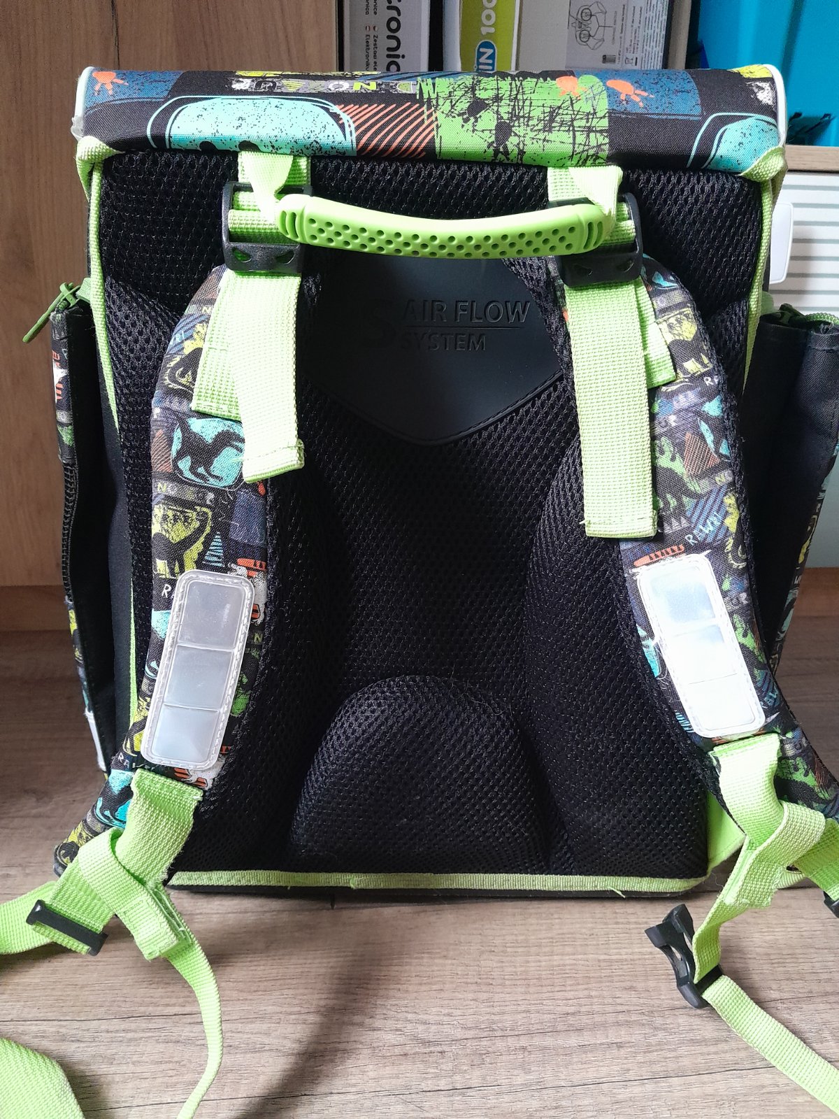 Školská taška v dobrom stave! Nosená 1,5 roka. Nosenie vidno minimalne. Bola k nemu aj taška na prezúvky ale neviem ju nájsť. PC:130€
