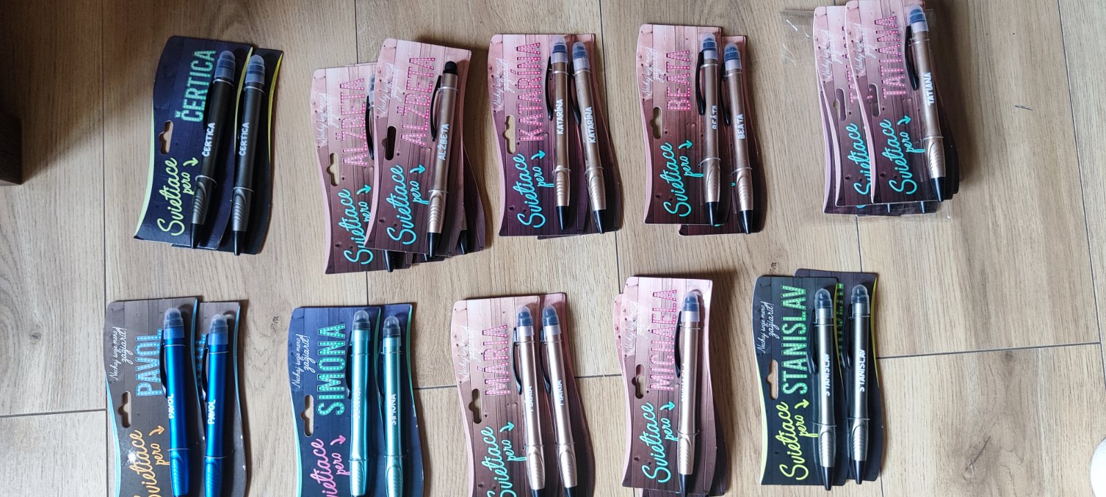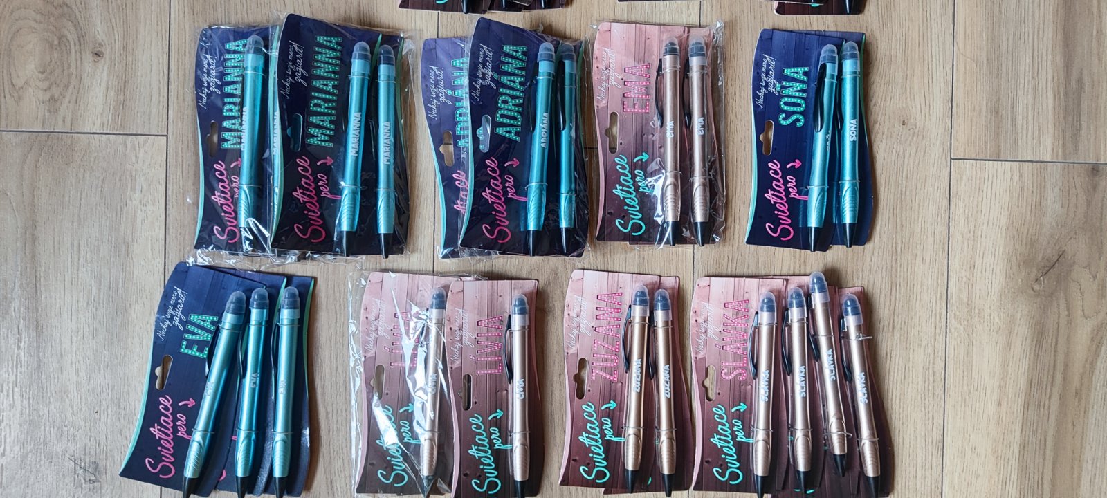 Stojan na perá a školské pomôcky v ružovej farbe, nejaké maličkosti chýbajú ale funkčný