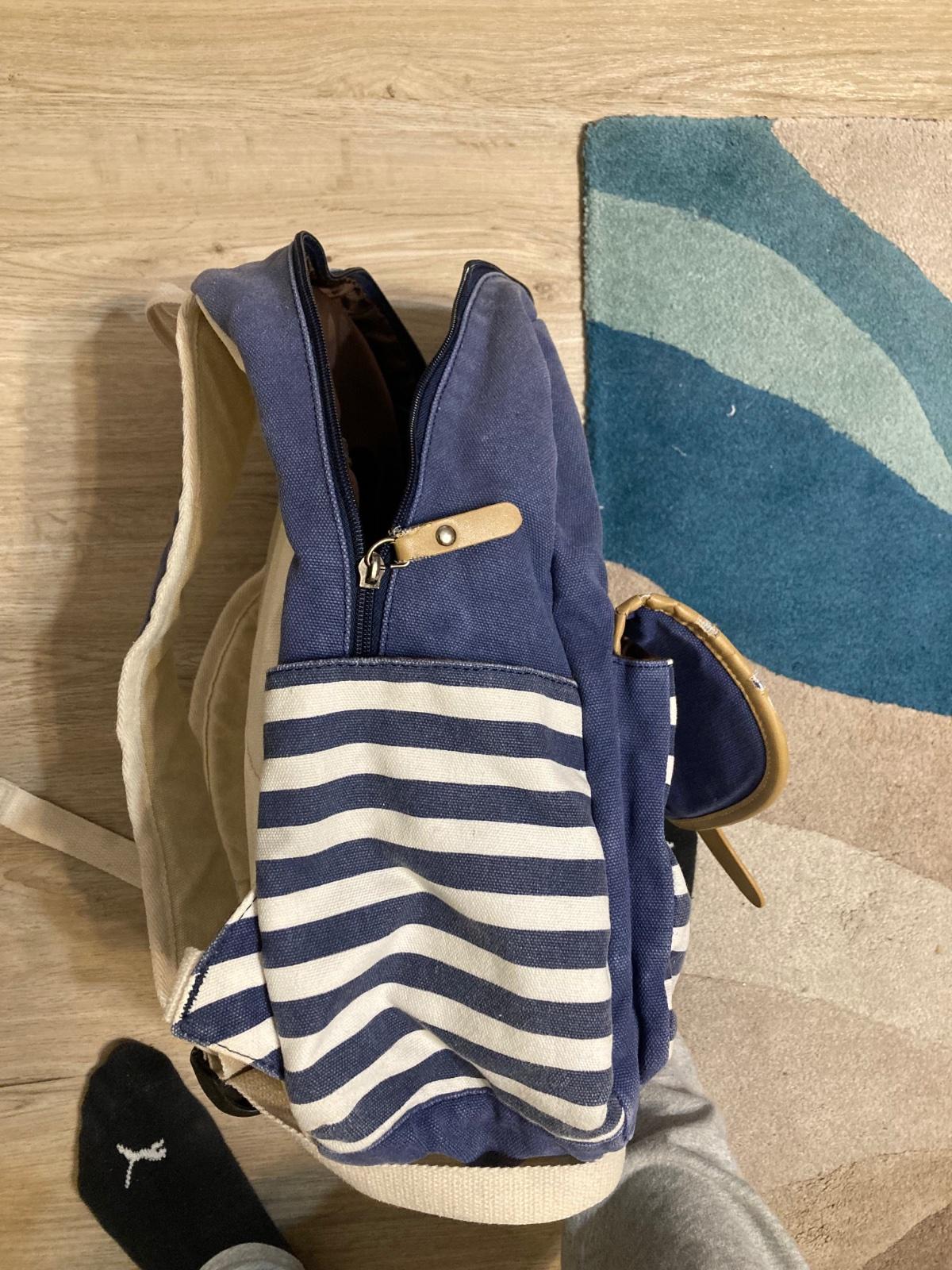 Školský ruksak. Používali sme jeden rok. Predné vrecko na desiatový box. Na každom boku vrecko na fľašu. Vo vnútri jedno vrecko na zips a dve priehradky na drobnosti. Vo vnútri puzdro na tablet.