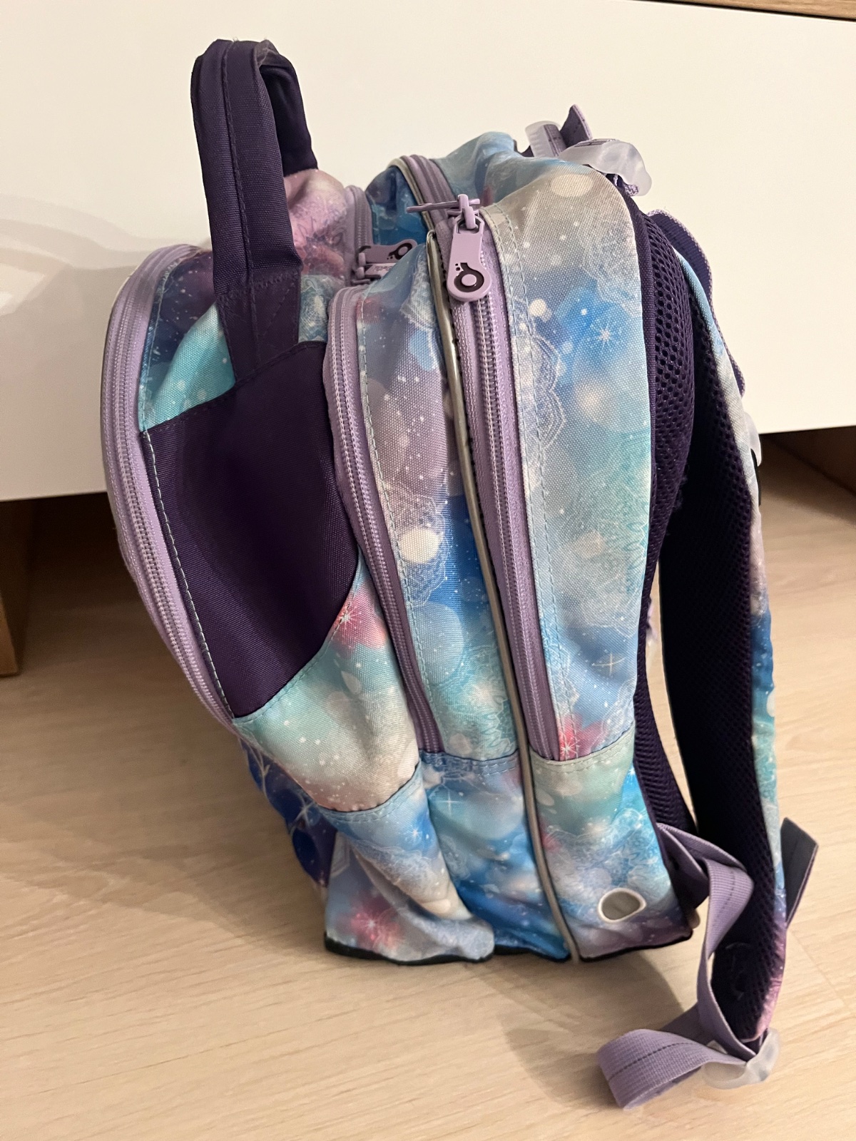 Rozmery 32x25x12cm. Používaný, zips trochu ošúchaný, ale farby stále pekné.Opraný.