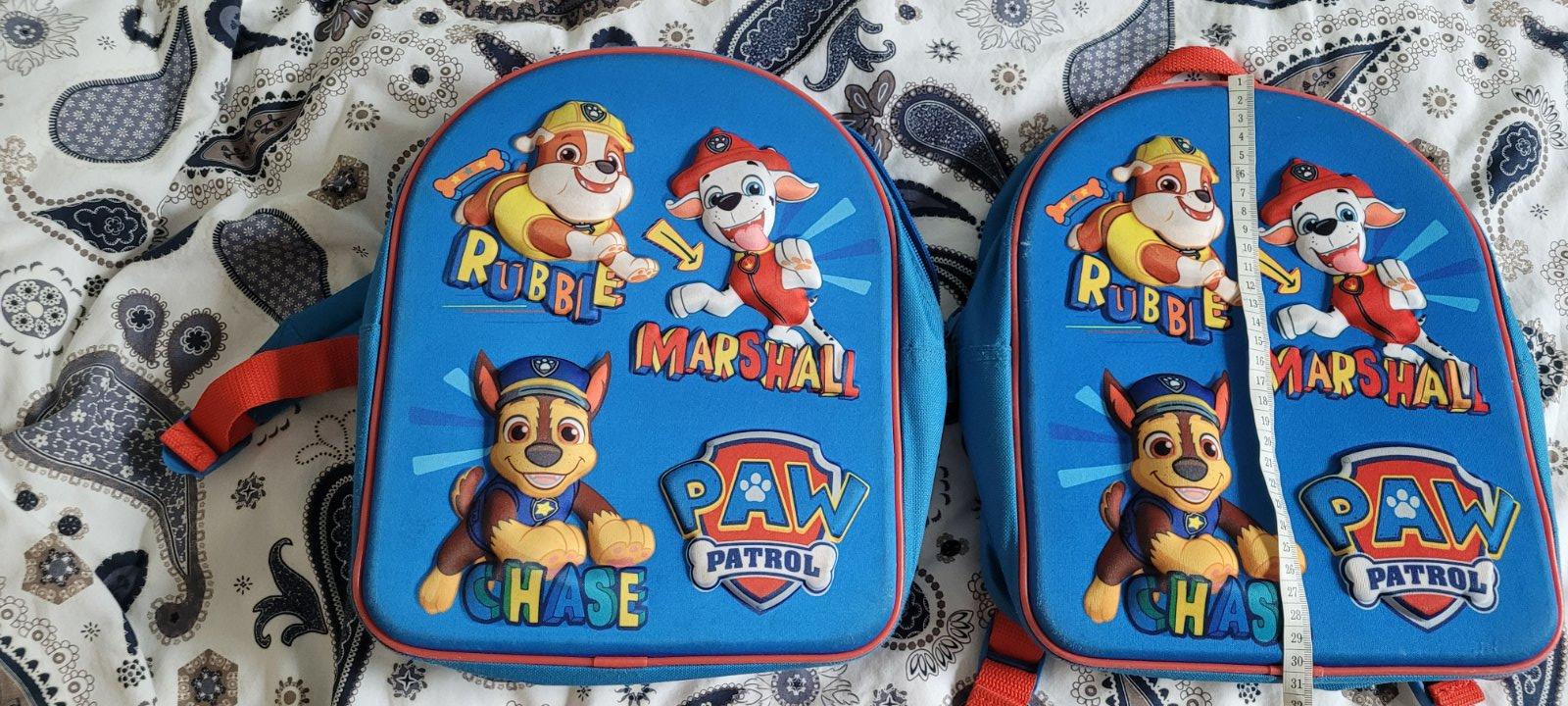 Malé ruksaky s motívom Paw Patrol. Vhodné na donosenie na ihrisko, vylet - boli naše obľúbené, takže je vidno používanie.