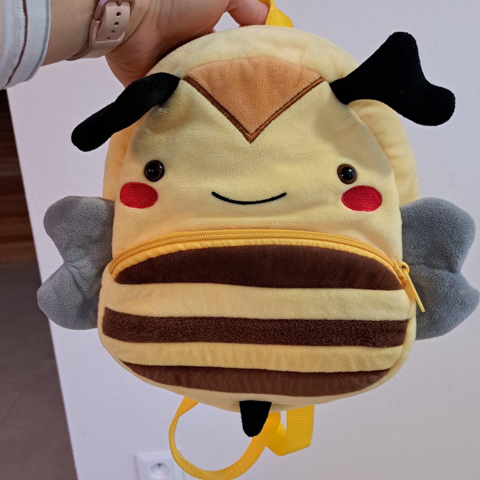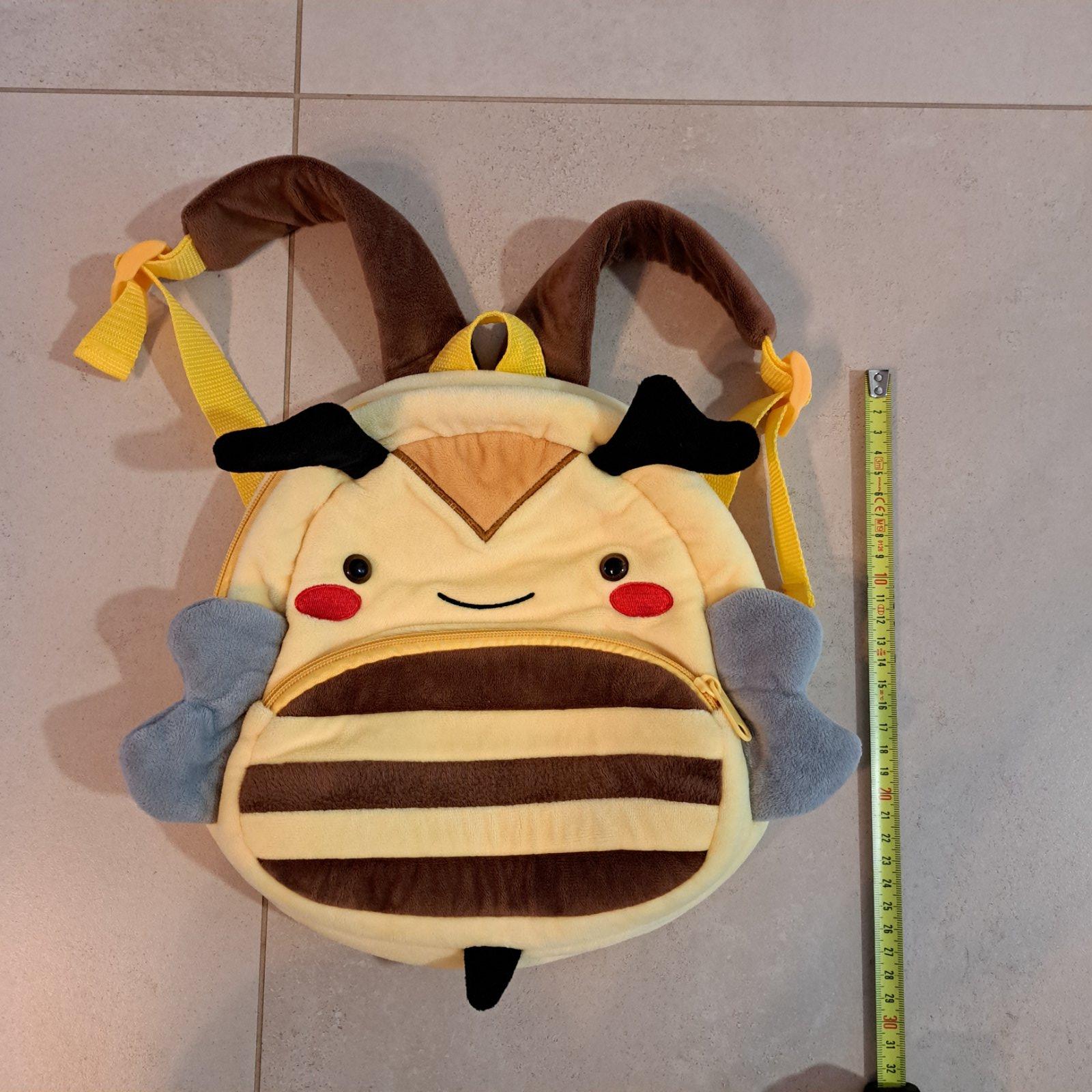 Predam pekny detsky ruksak pre skolkarov, vcielka. Material plys. Dlzka cca 27cm. Ma hlavne a mensie vrecko, usko na zavesenie. Zipsy funguju, popruhy su nastavitelne. Cena + posta