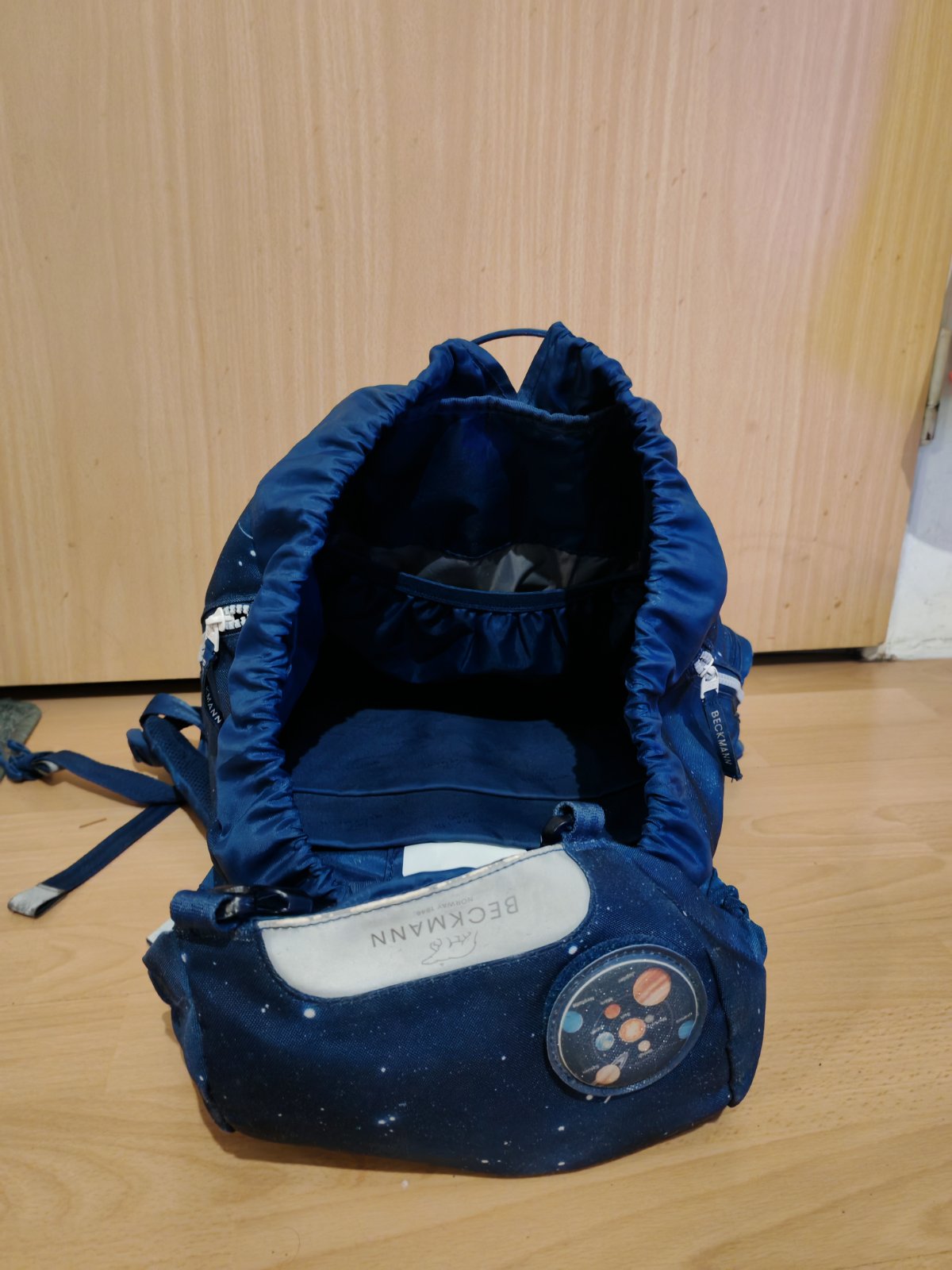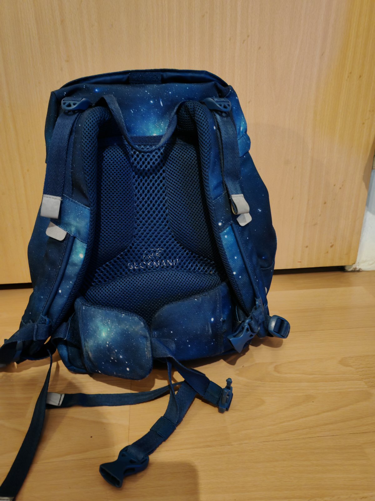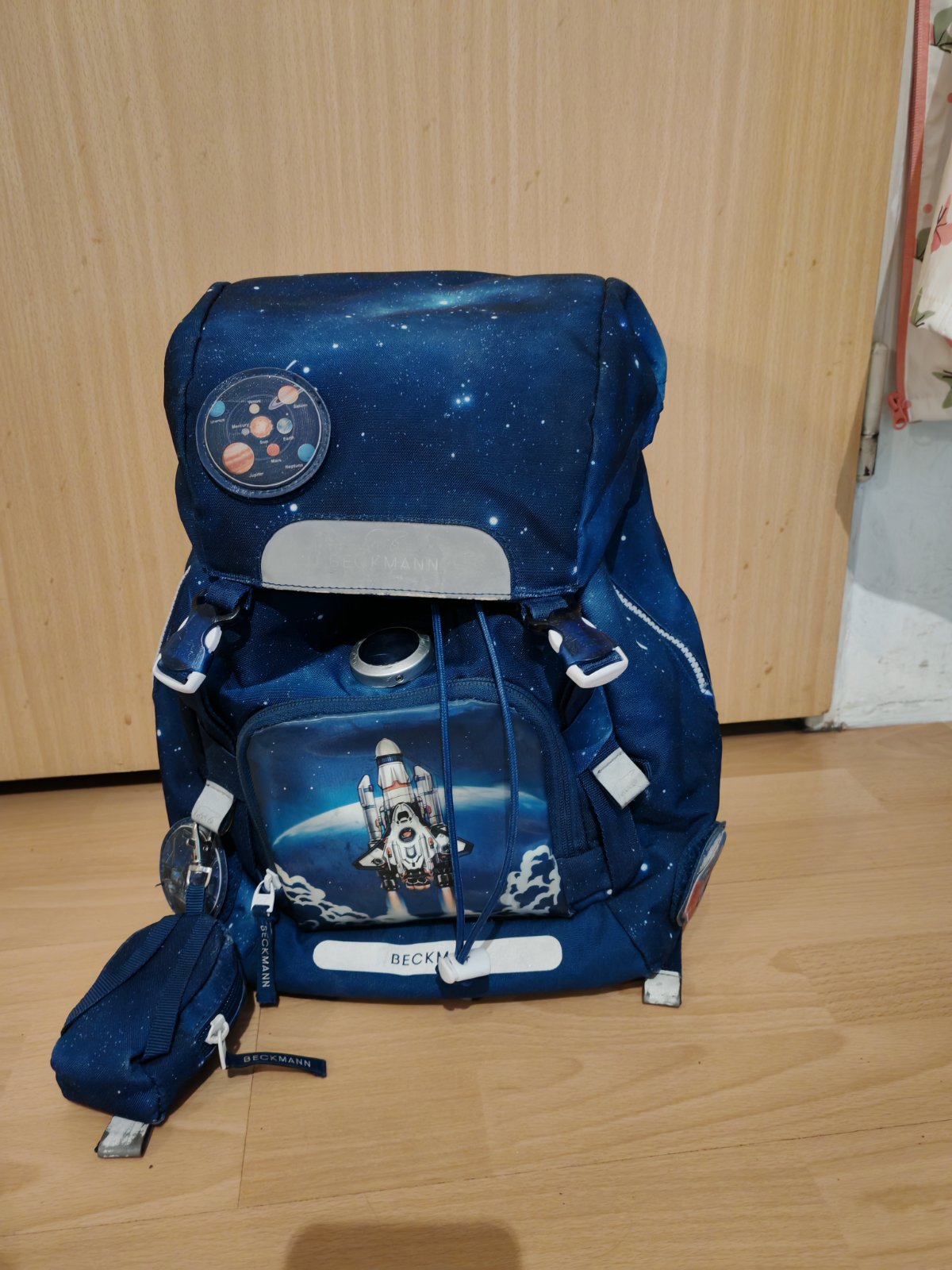 Vo veľmi dobrom stave,vhodná až do 4ročníka.Priestranná, nastaviteľné pútka na chrbát aj vystužená mäkká formovaná.Kupovaná v Mülleri.Ešte je k tomu peračník 2ks, taška na prezúvky vo vzore ako je ...