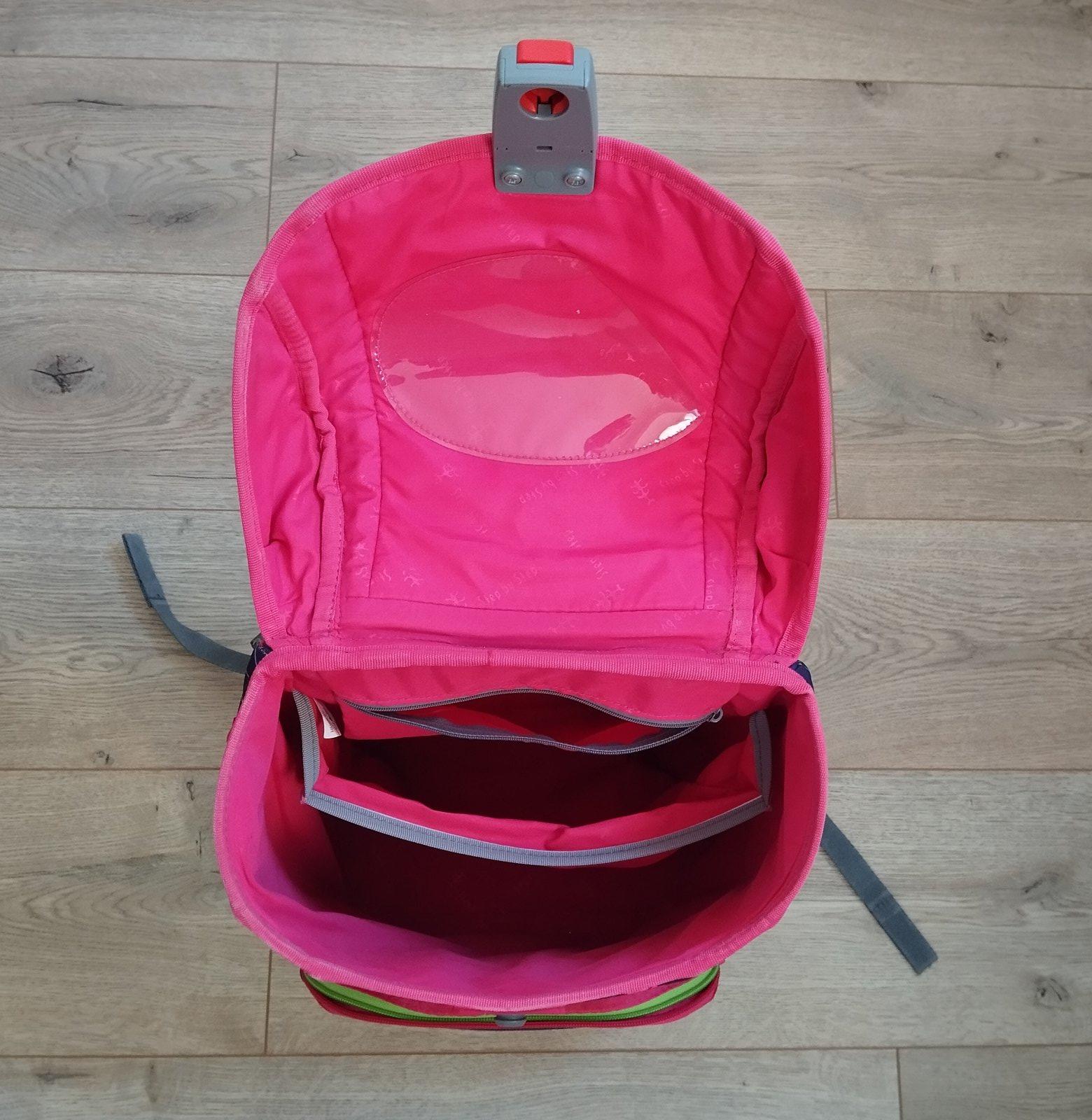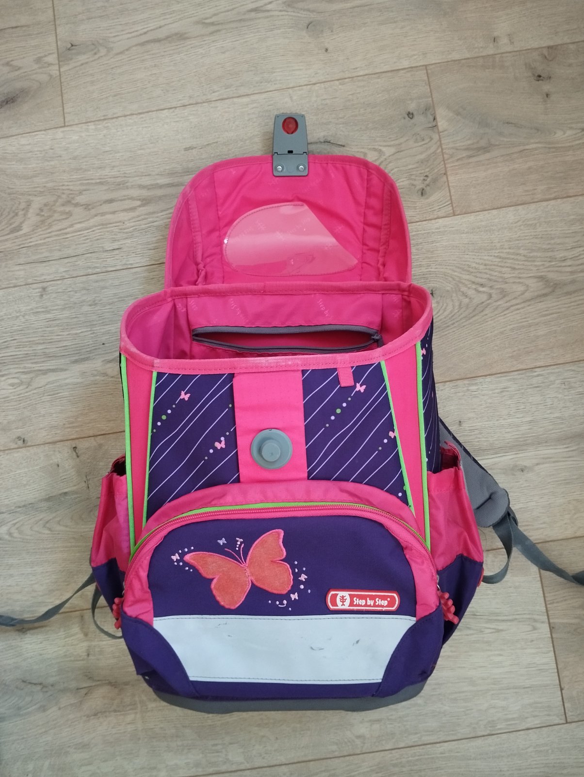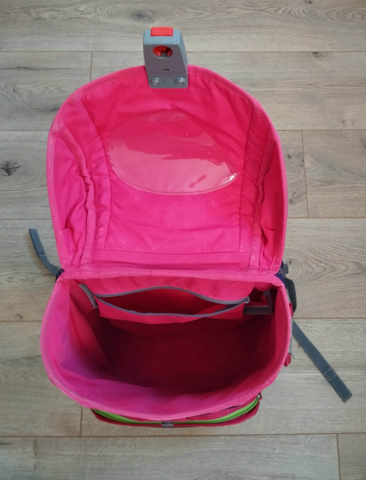 perfektne drží tvar aj po naplnení, jednoduché zapínanie na pevne držiaci magnet, odopina sa jednoduchým stlačením červeného tlačidla smerom nahor, súčasťou je peračník a vrecko na topánky, tiež prikladám
