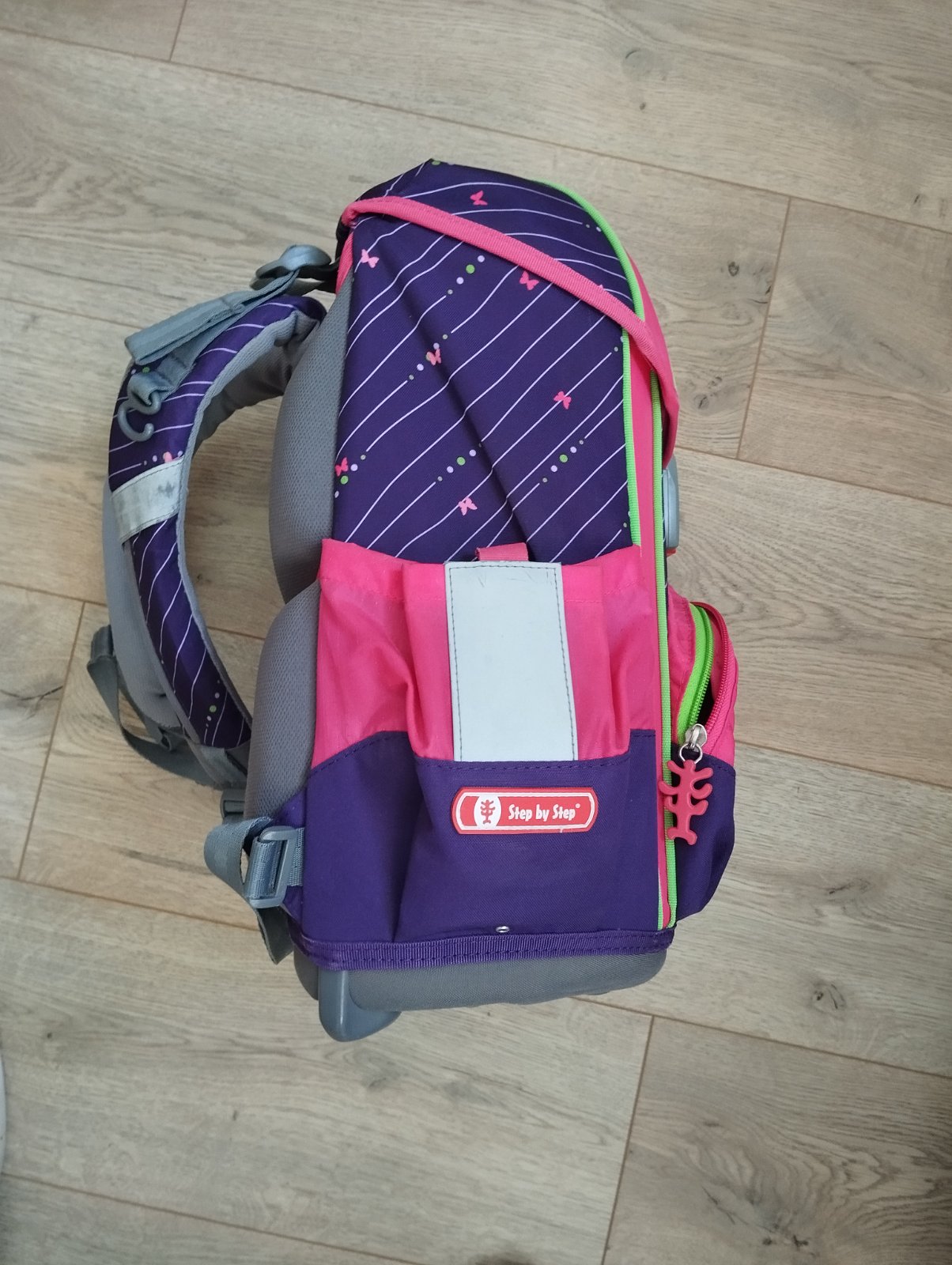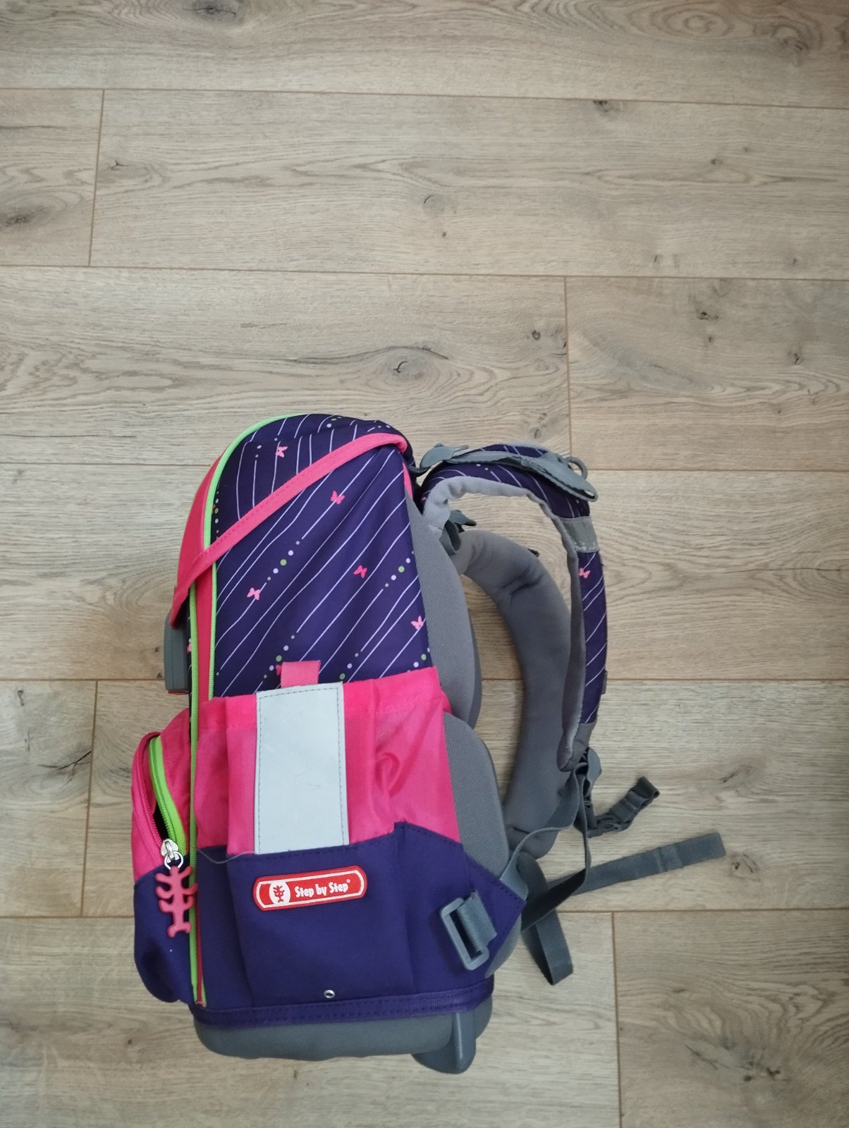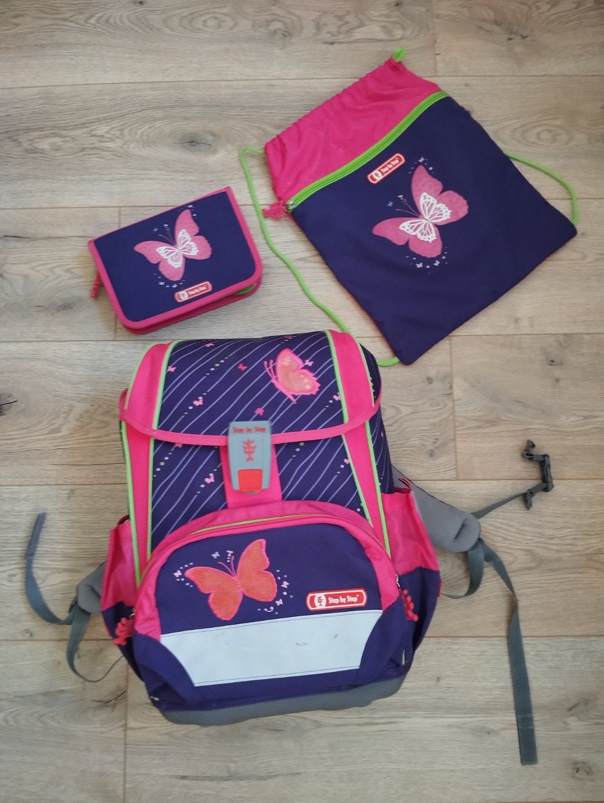 perfektne drží tvar aj po naplnení, jednoduché zapínanie na pevne držiaci magnet, odopina sa jednoduchým stlačením červeného tlačidla smerom nahor, súčasťou je peračník a vrecko na topánky, tiež prikladám