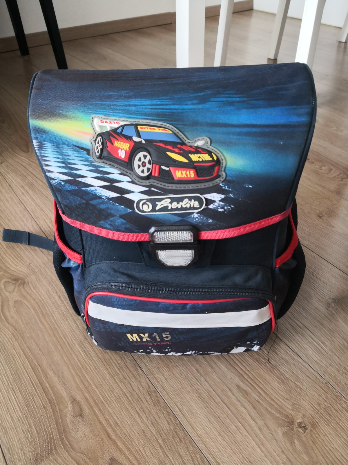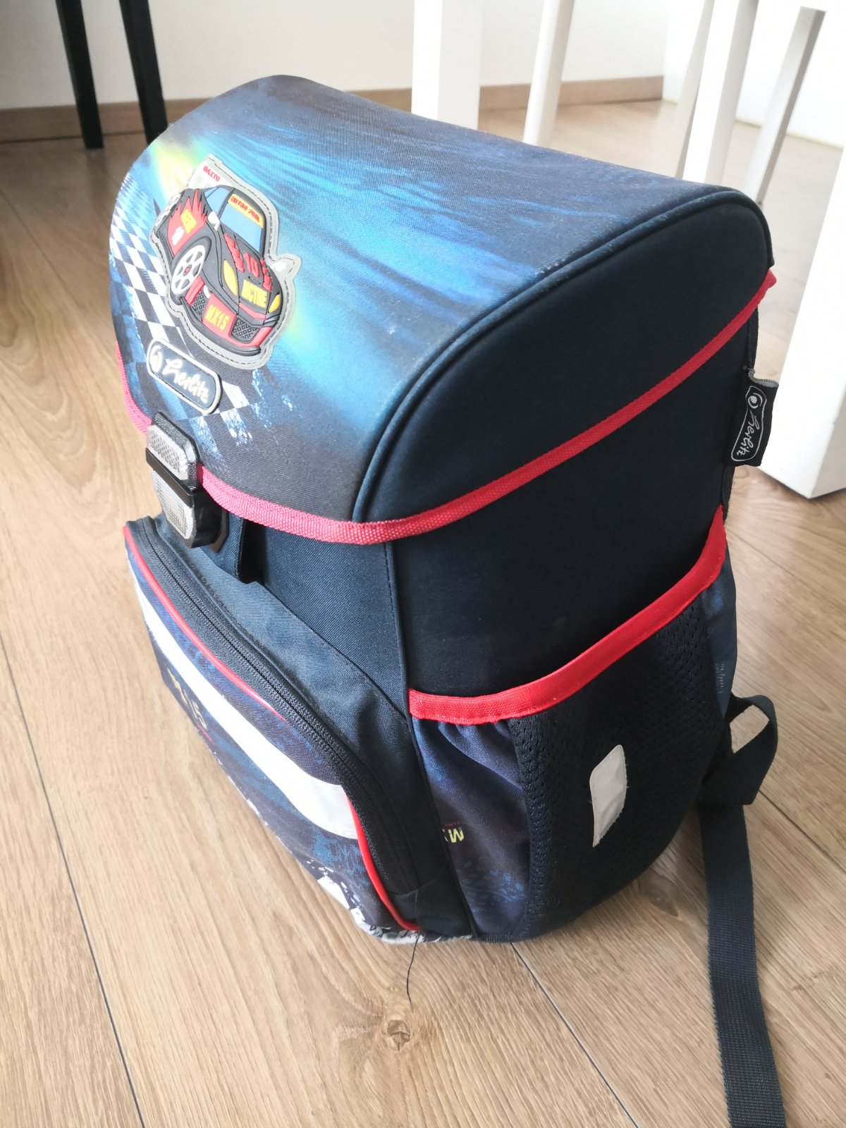 Školská taška s pretekárskym autíčkom, bez poškodenia, veľmi dobrý stav