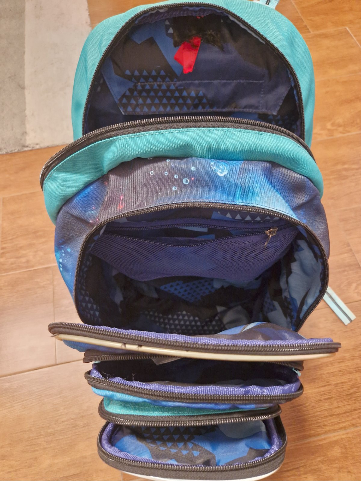Nosená synom jeden rok. Obrázky sú na magnet,dajú sa odopnúť.V predu termo vrecko na desiatu.