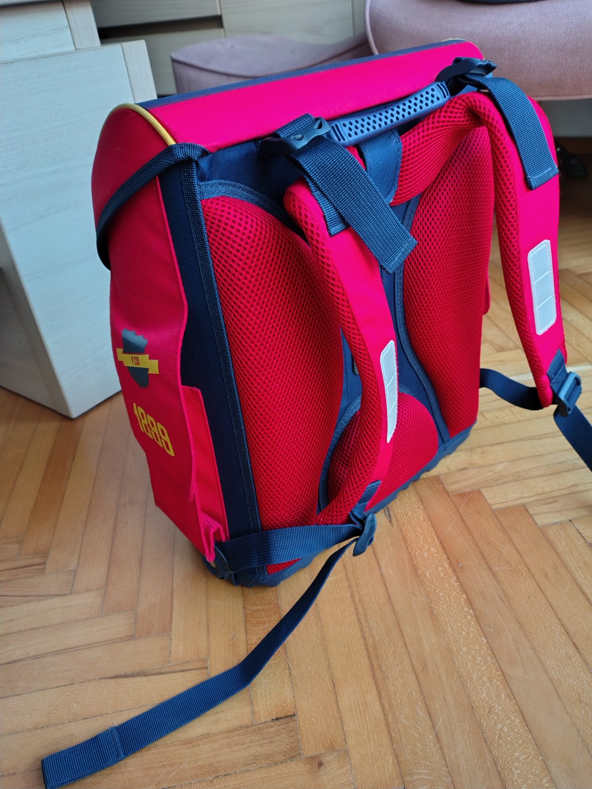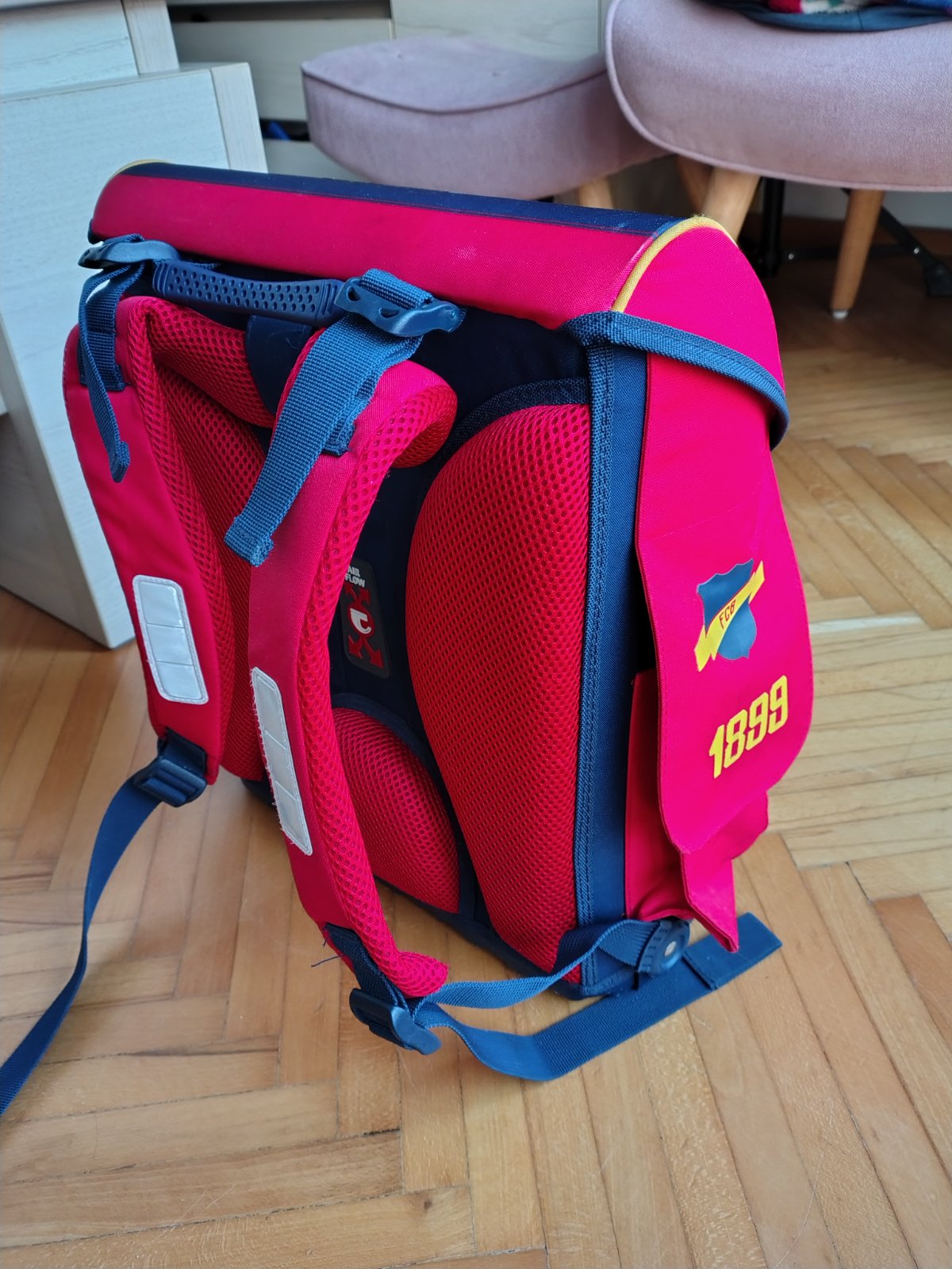 Aktovka je veľmi zachovalá, nosená len pár krát do klubu, lebo babička kúpila vopred a syn sa učil doma, nechodil do školy. Vieme ju doručiť niekam v Žiline, jej okolí a na Kysuce.