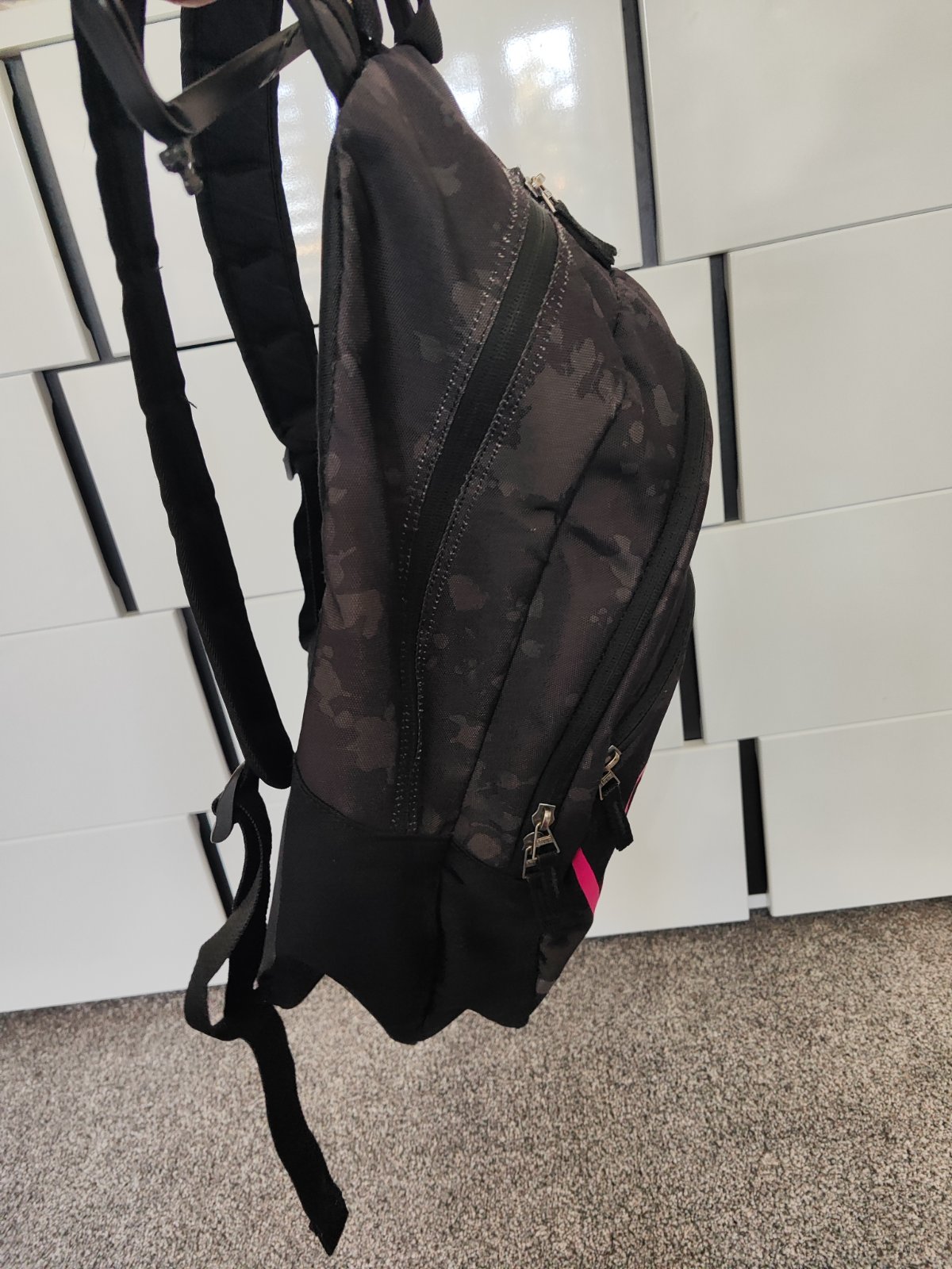 Ruksak, vhodný aj ako školská taška. Má tri úložné priehradky, dve bočné vrecká a nastaviteľné mäkké popruhy. Materiál: 100% polyester Rozmer: 42 x 32 x 20 cm Mám skladom Poštovné 4€