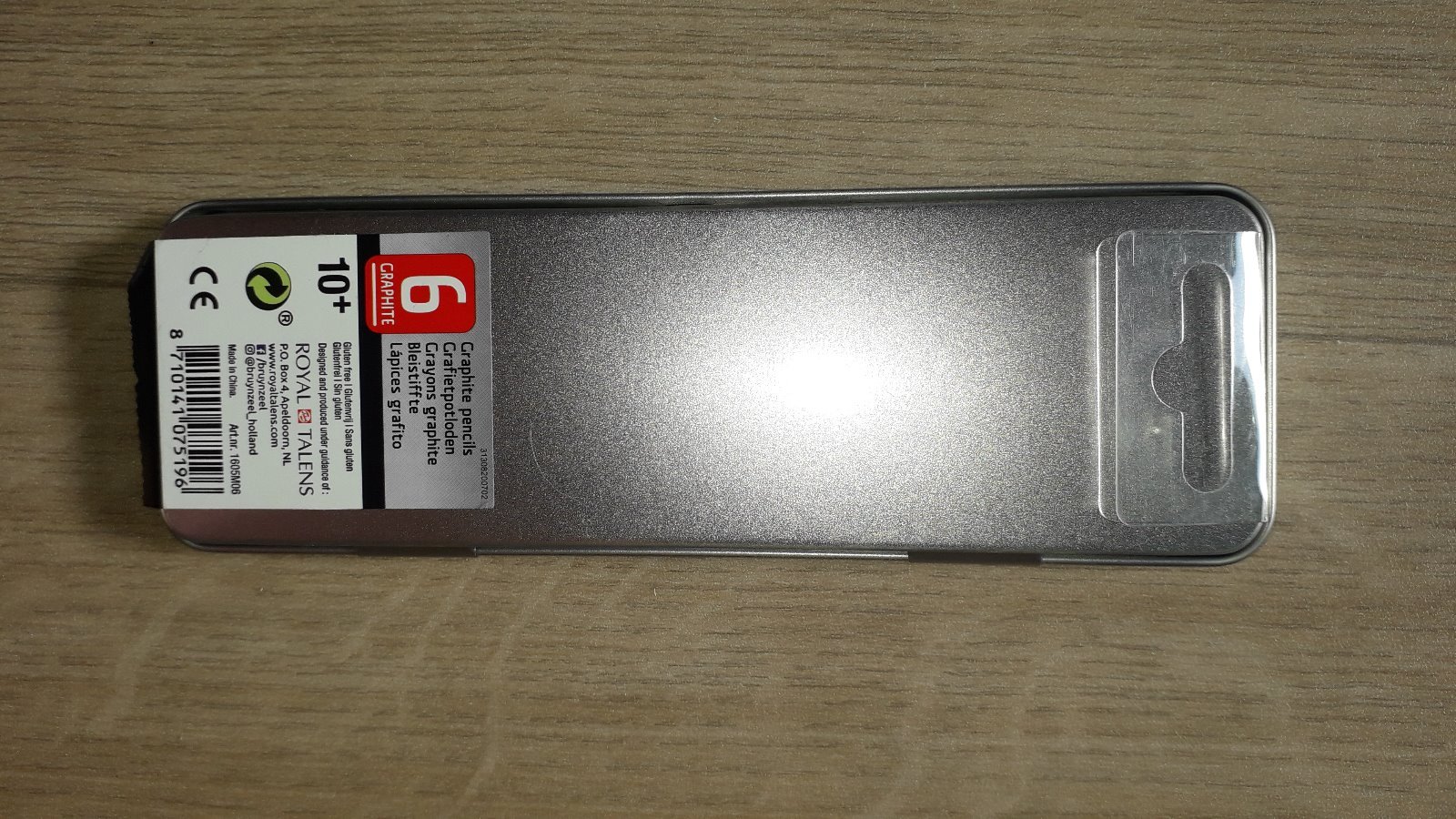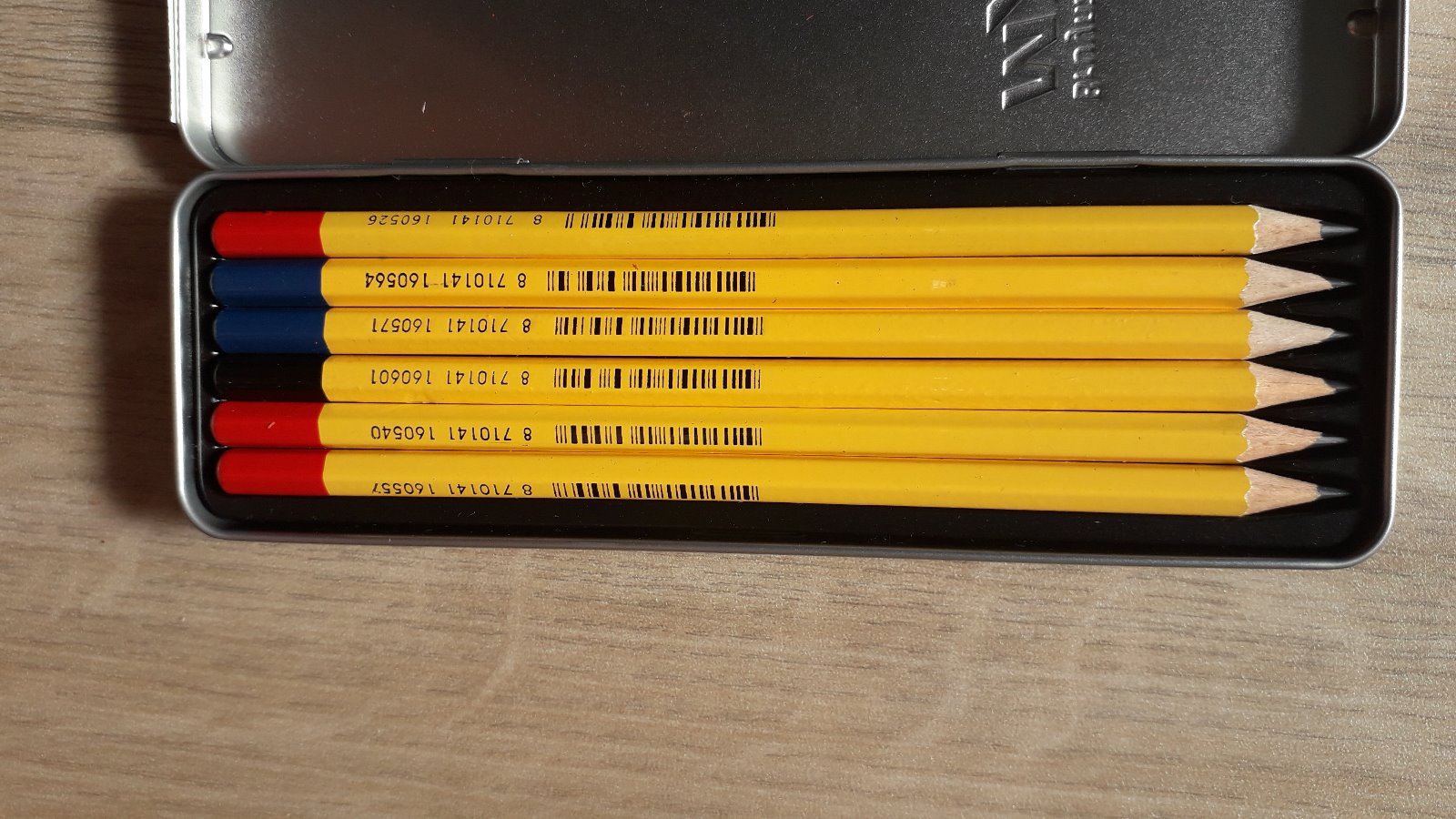 Grafitové bezfarebné ceruzky v striebornej/šedej kovovej dóze.