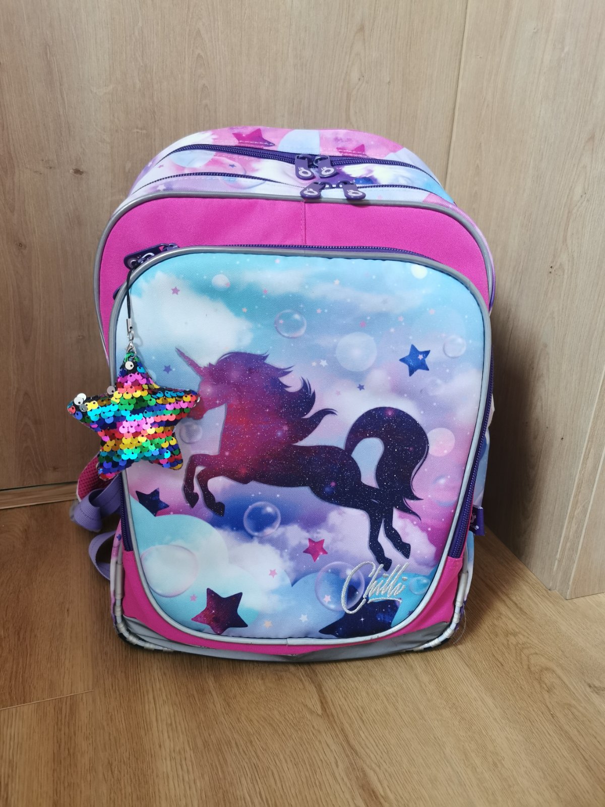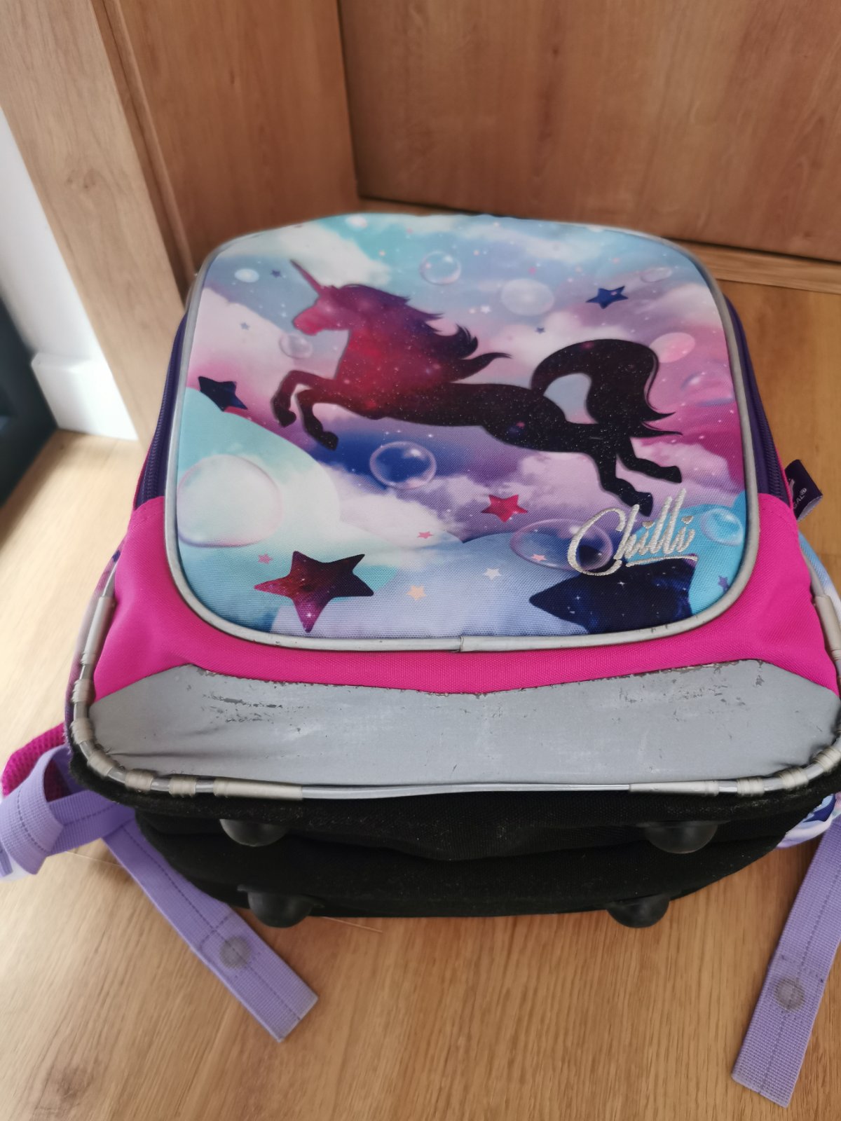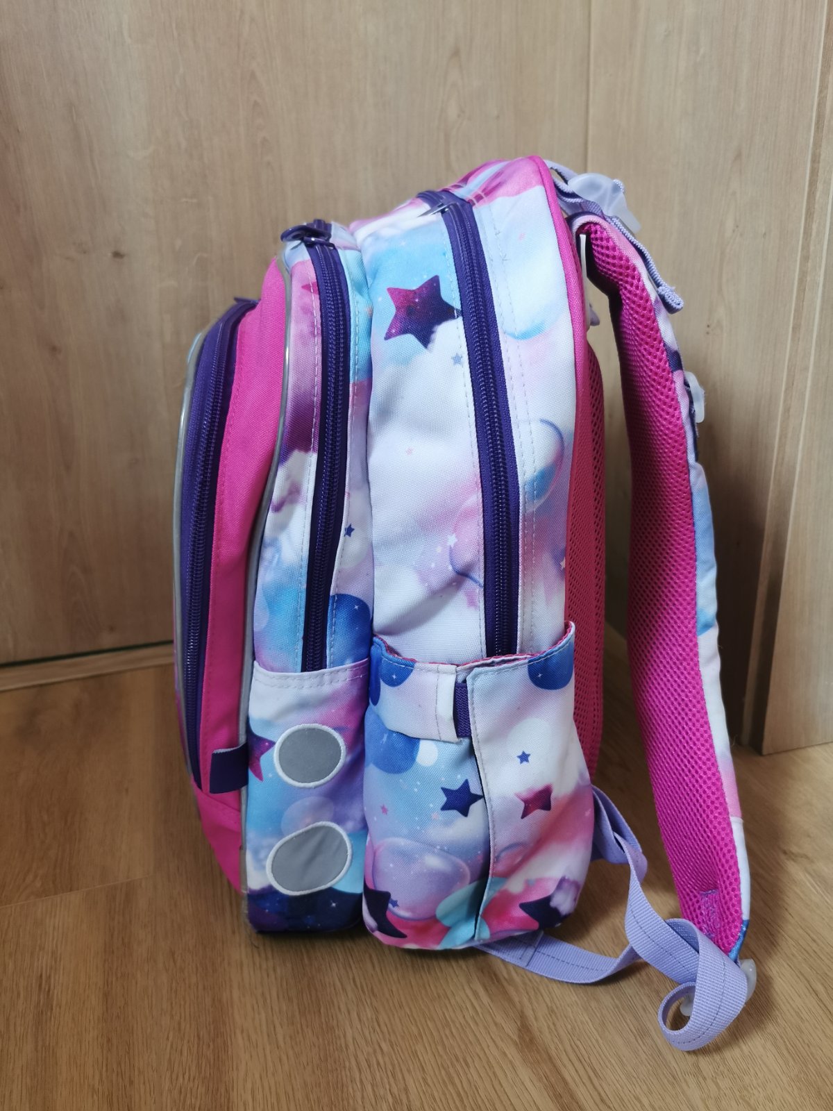Taska je takmer v 100% stave. Dcera ju nosila kratko.. Je stale pevna, nic neje potrhane. Dolny reflexny prvok ma jemne suchance inak je v Top stave.