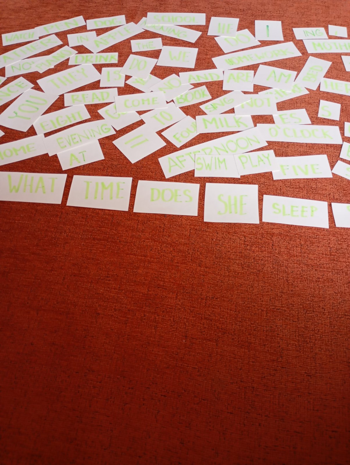 Vyrobila som kartičky pre dcéru na učenie tvorby viet v angličtine, zamerané sú na tvorbu viet prítomného času a priebehového času. Používali sme v 4.triede a u nás to pomohlo. Už sa to naučila,preto budem rada, ak to ešte niekto využije. Môžem k tomu pripojiť aj vytvorené a preložené vety.
