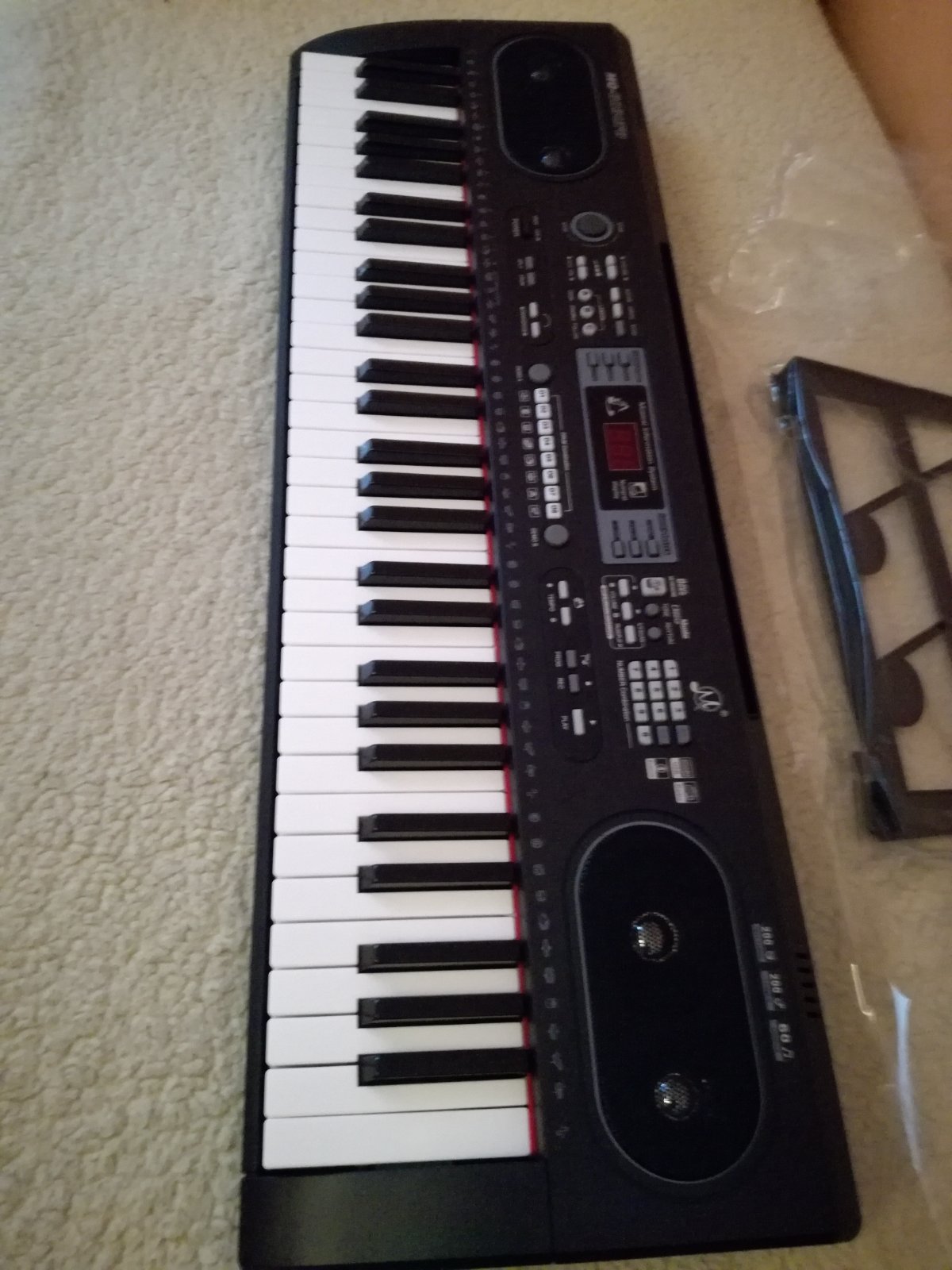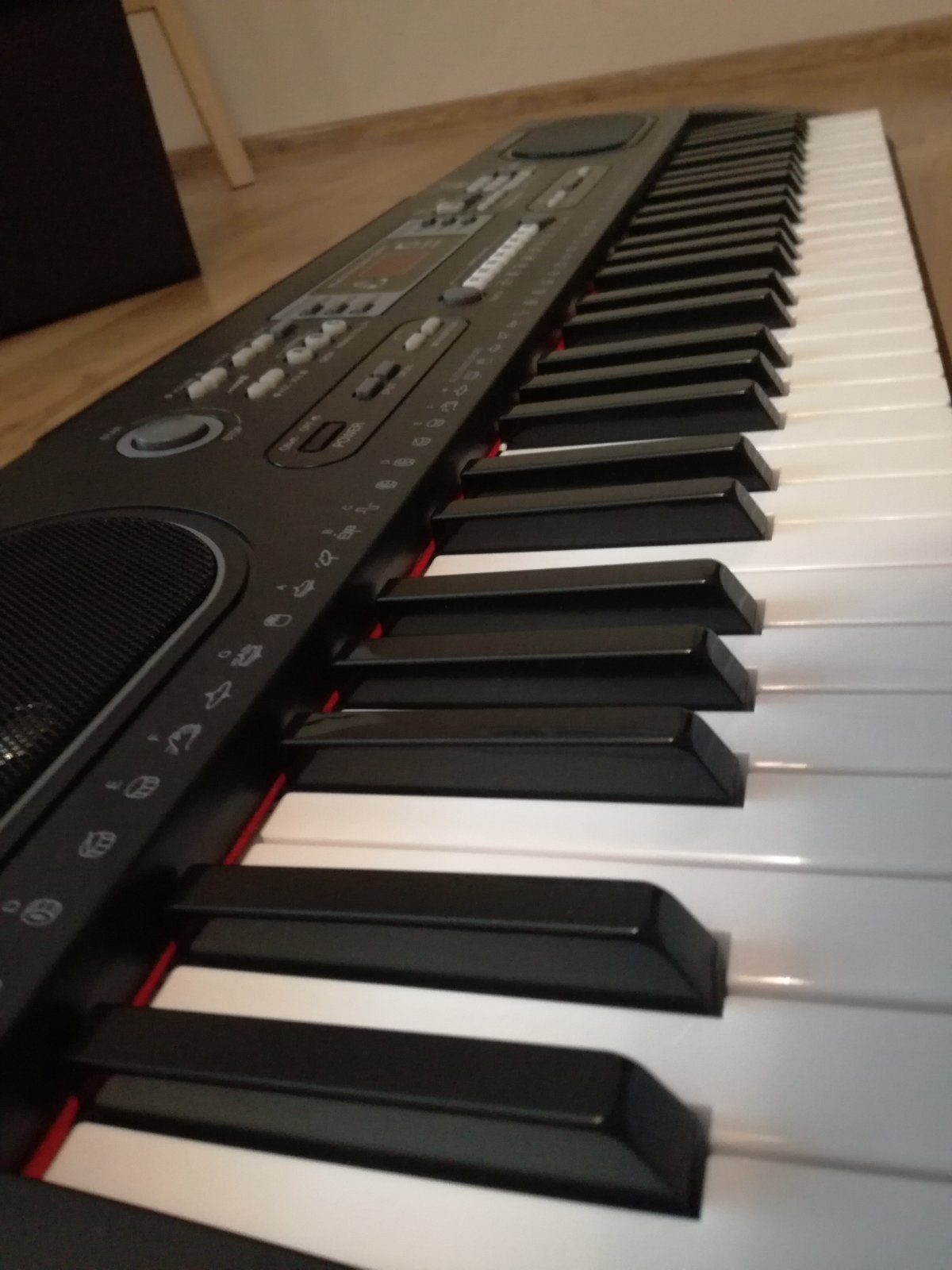 Predám nové klávesy /keyboard, varhany/ vhodné najmä pre začiatočníkov. Špecifikácia: 61 kláves – 36 bielych a 25 čiernych, podsvietený LCD displej, 200 tónov, 200 rytmov, 8 bicích sád, 10 demo skladieb v knižnici, funkcia hranie jedným prstom plné akordy,ovladanie tempa,funkcia programovania rytmu, ovládanie hlasitosti, nahrávanie a prehrávanie hudby, stereo reproduktory. Tlačidlá pre typy bubnov, rádio, bluetooth, výstup na reproduktory, mikrofonu a sluchadla, vstup USB, vstup MP3, napájanie.
