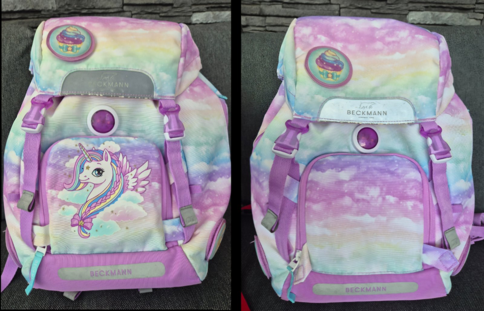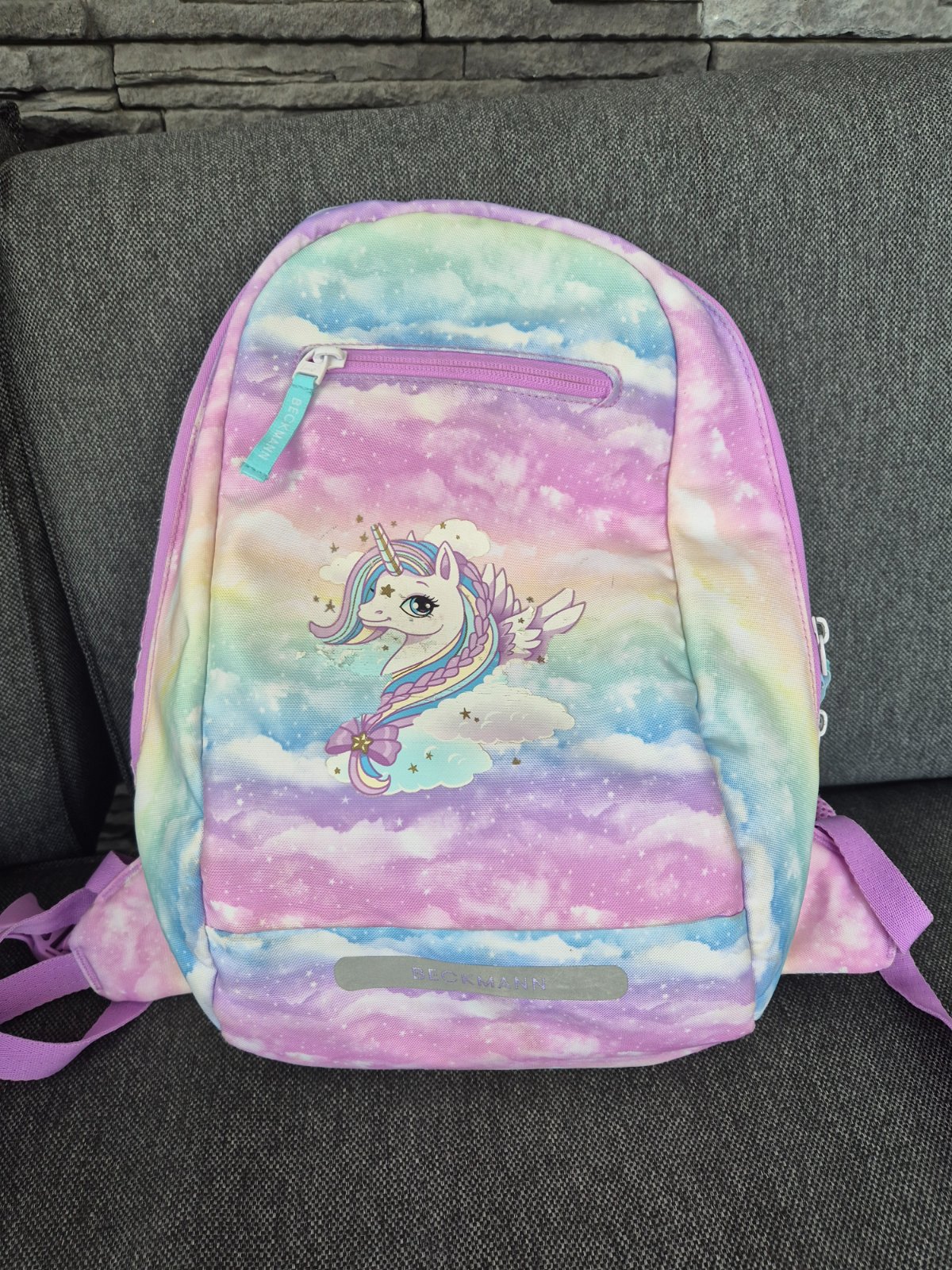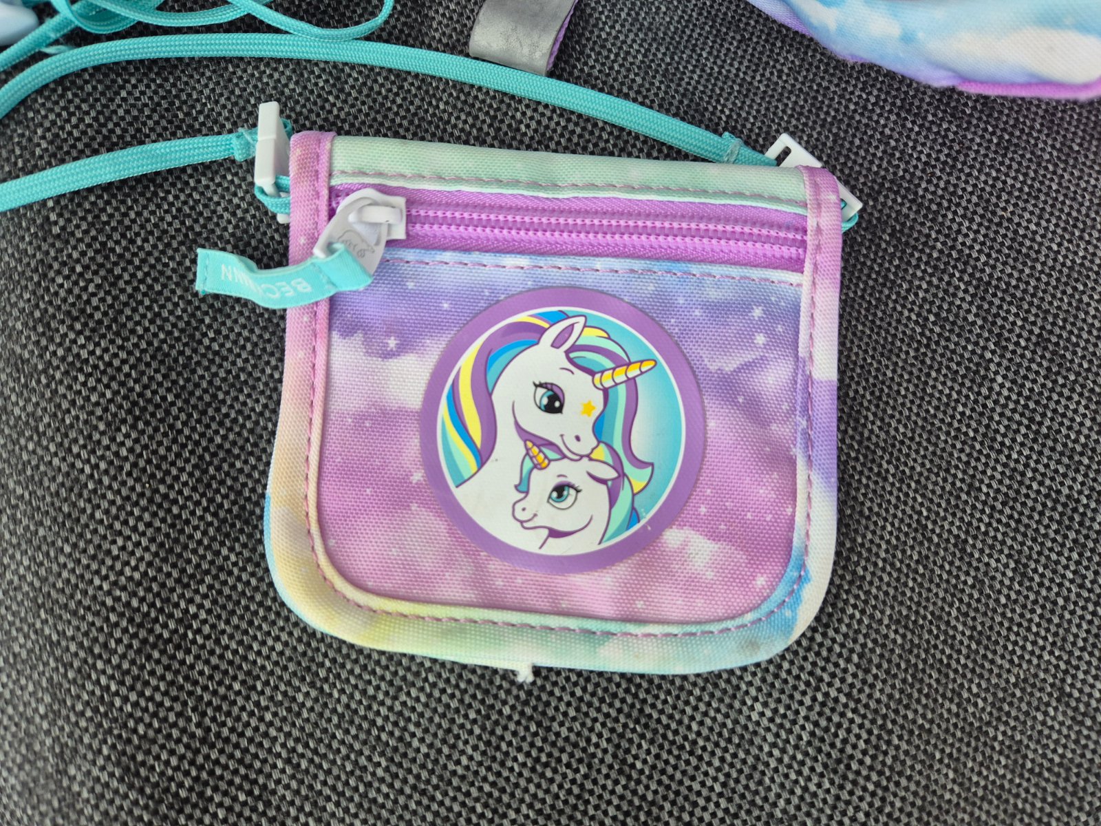 Inak super stav. Unicorn na dá na školskej taške schovať tak,že sa celé predne vrecko iba prevenčie. Peňaženko-kľučenka bola použitá iba párkrát na školskej výlety.