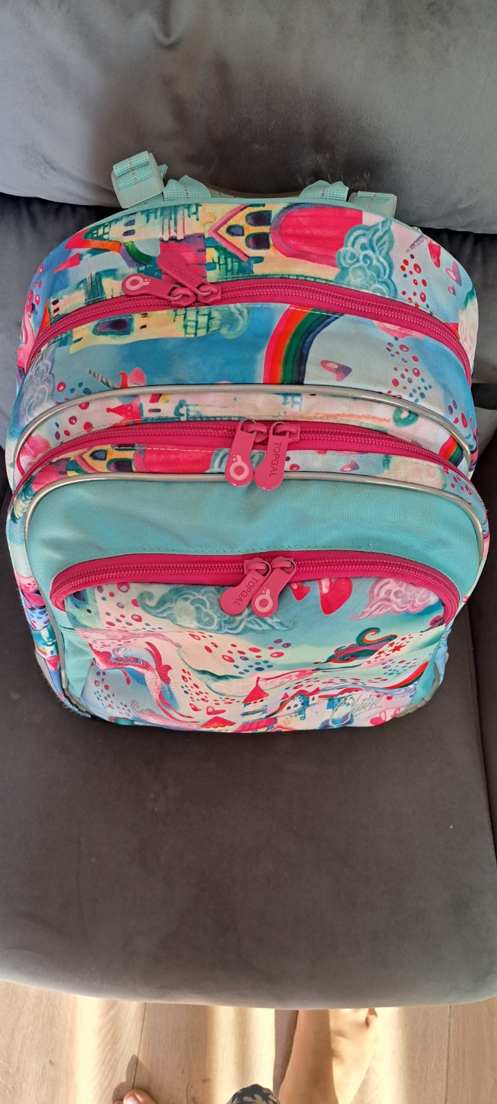 Ponúkam na predaj školskú tašku zn.TOPGAL. Taška je z kategórie pre 1.stupeň. Je nosená jeden školský rok - má bežné známky nosenia,nič nieje potrhané/zodraté - pár šuchnutých bodiek na prednej reflexnej časti -vidieť na foto. Najlepšie osobný odber a v rámci Prešova viem niekde priviesť. Ak poštou,tak plus poštovné na polku :)